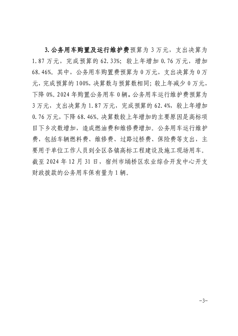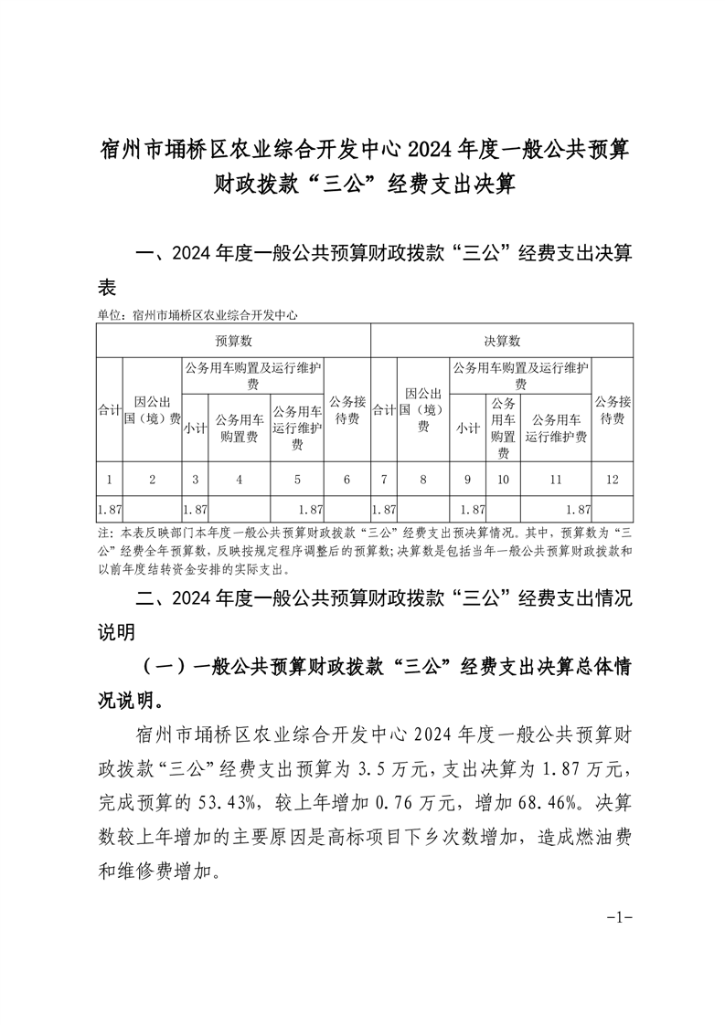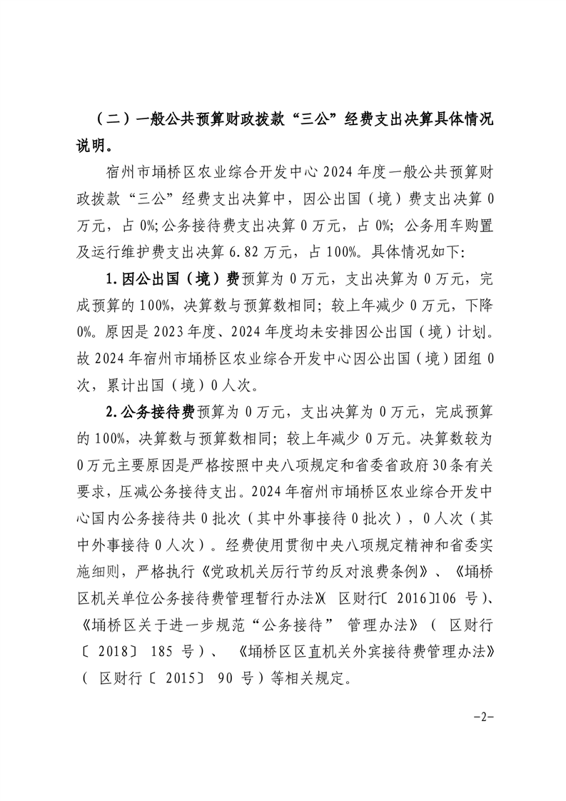 | 名称: | 宿州市埇桥区农业综合开发中心2024年度一般公共预算财政拨款“三公”经费支出决算 | ||