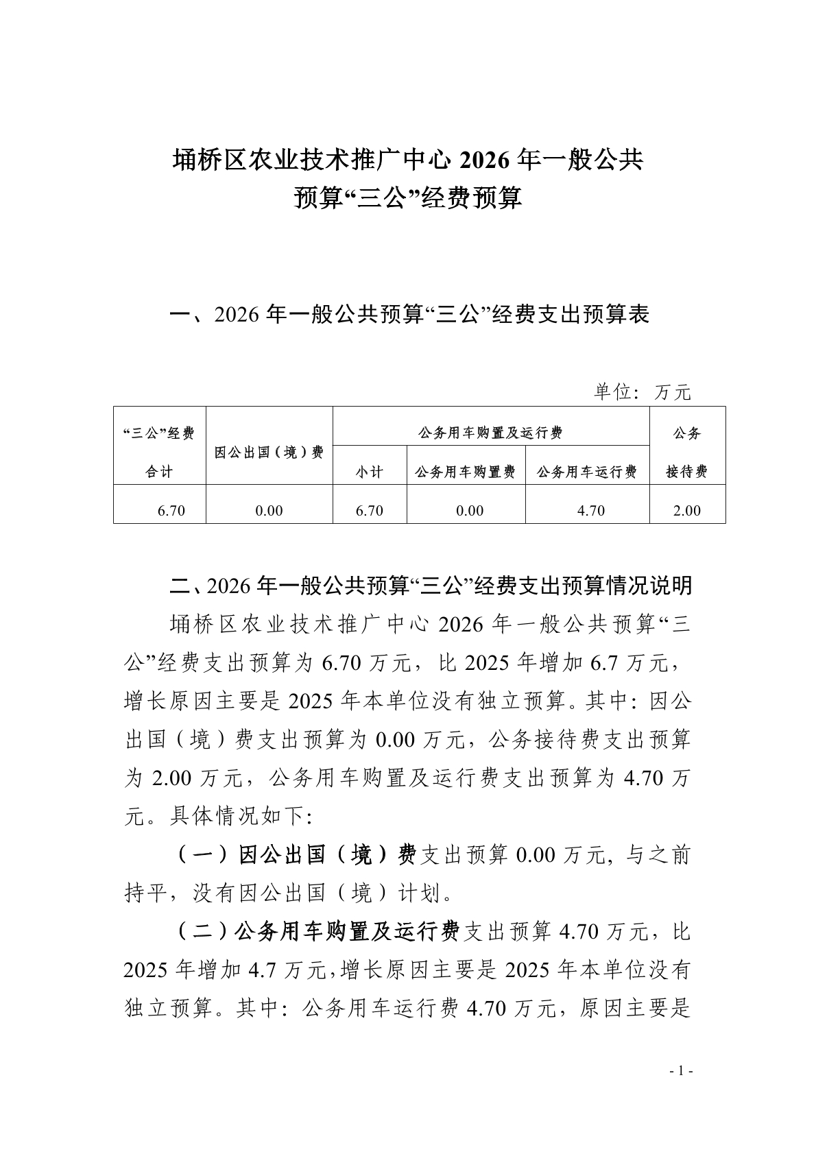 | 名称: | 埇桥区农业技术推广中心2026年一般公共预算“三公”经费预算 | ||