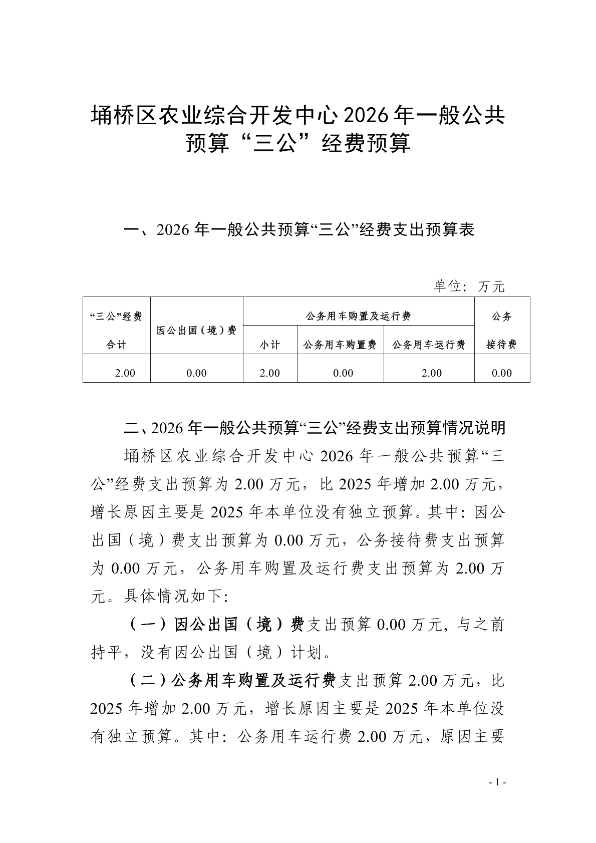 | 名称: | 埇桥区农业综合开发中心2026年一般公共预算“三公”经费预算 | ||