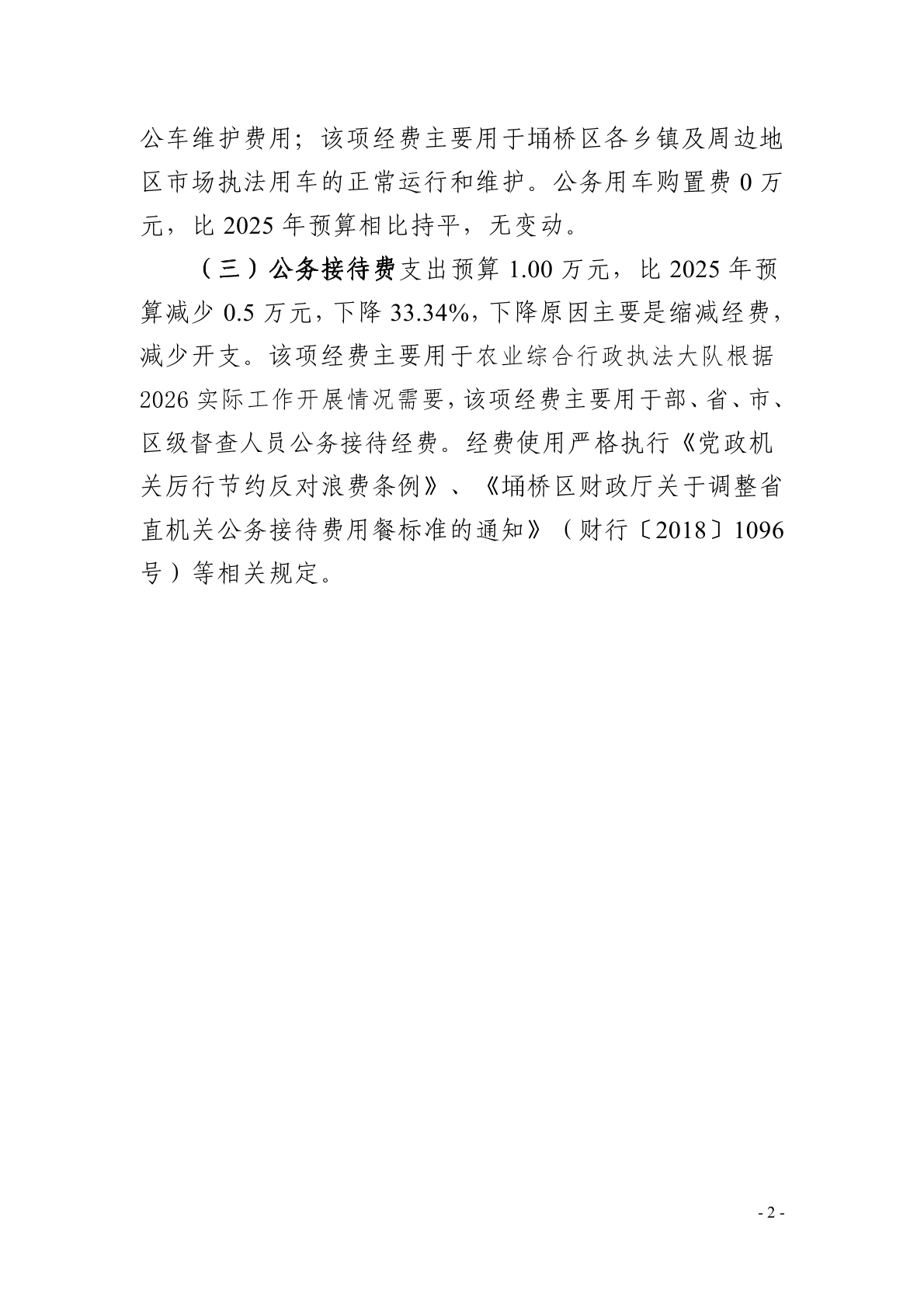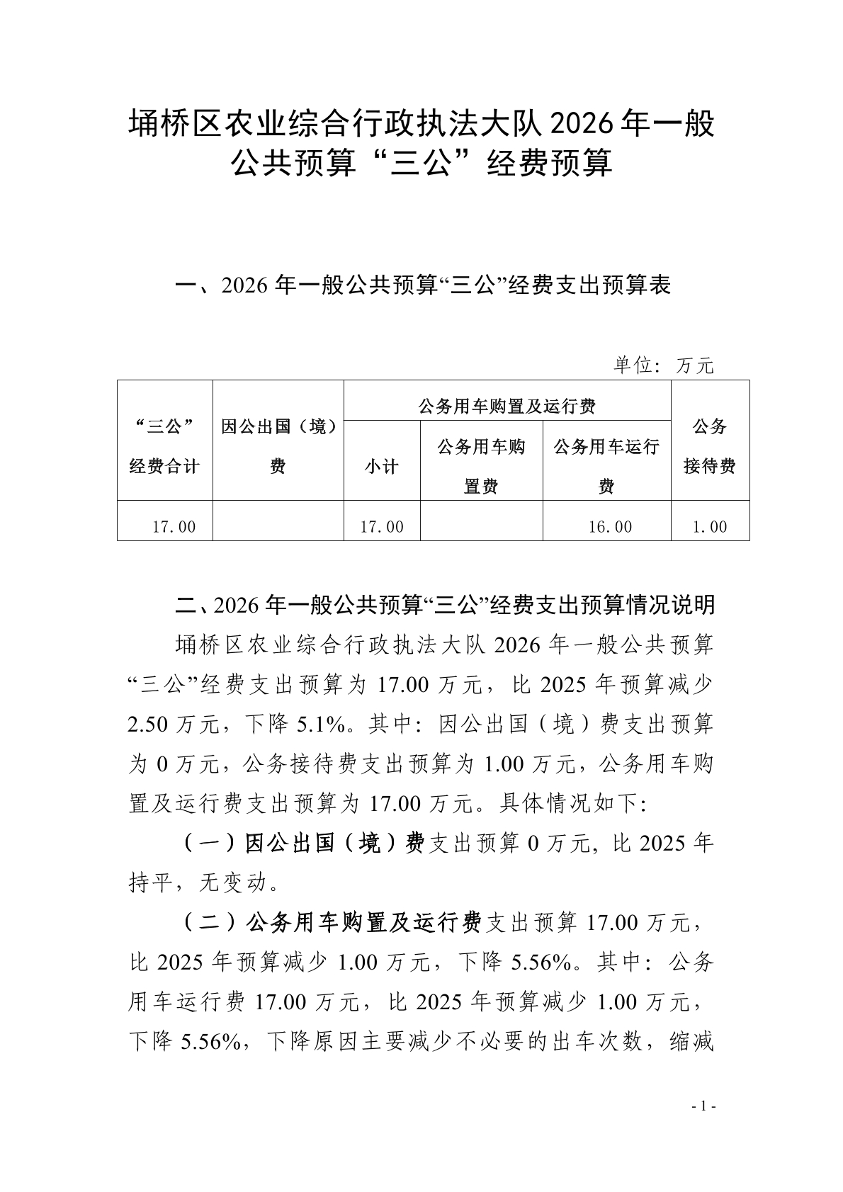 | 名称: | 埇桥区农业综合行政执法大队2026年一般公共预算“三公”经费预算 | ||