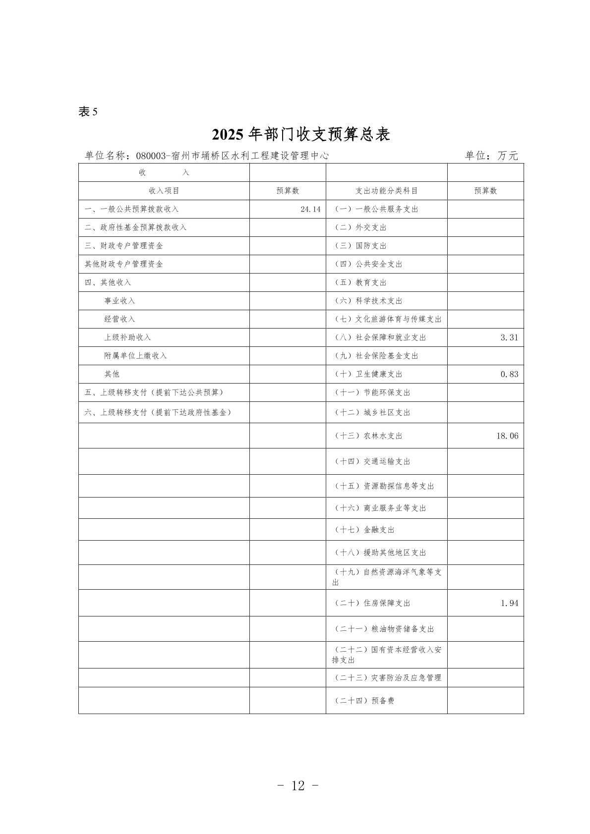 宿州市埇桥区水利工程建设管理中心2025年单位预算
