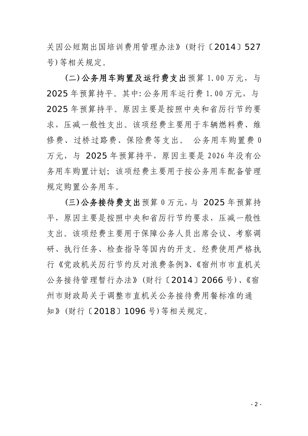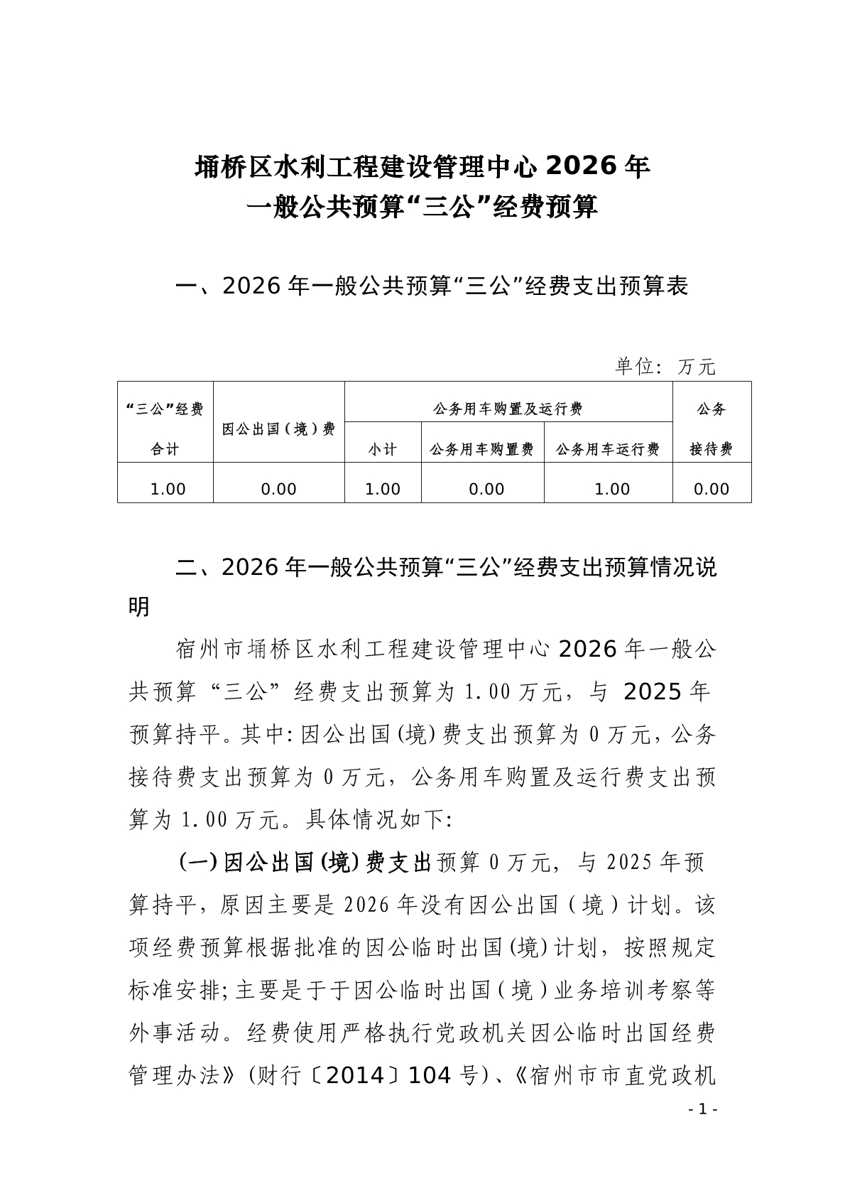| 名称: | 宿州市埇桥区水利工程建设管理中心2026年一般公共预算“三公”经费预算 | ||