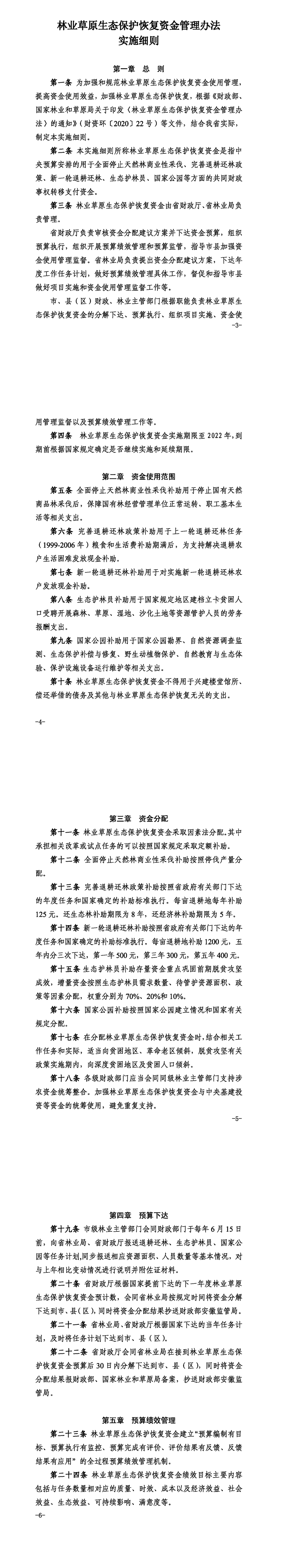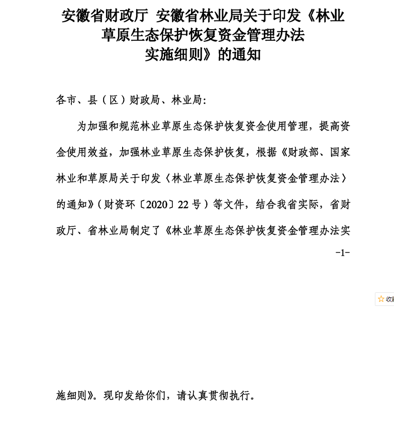 林业草原生态保护恢复资金管理办法实施细则(皖财资环〔2020〕892号)