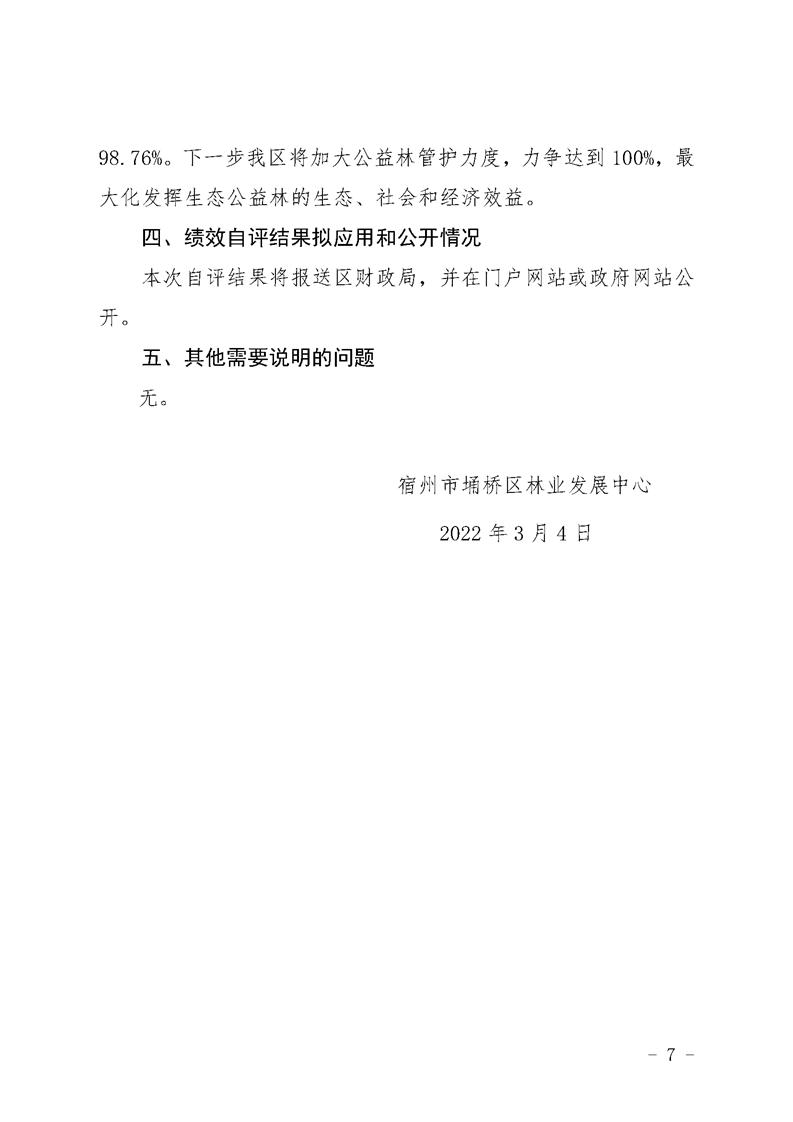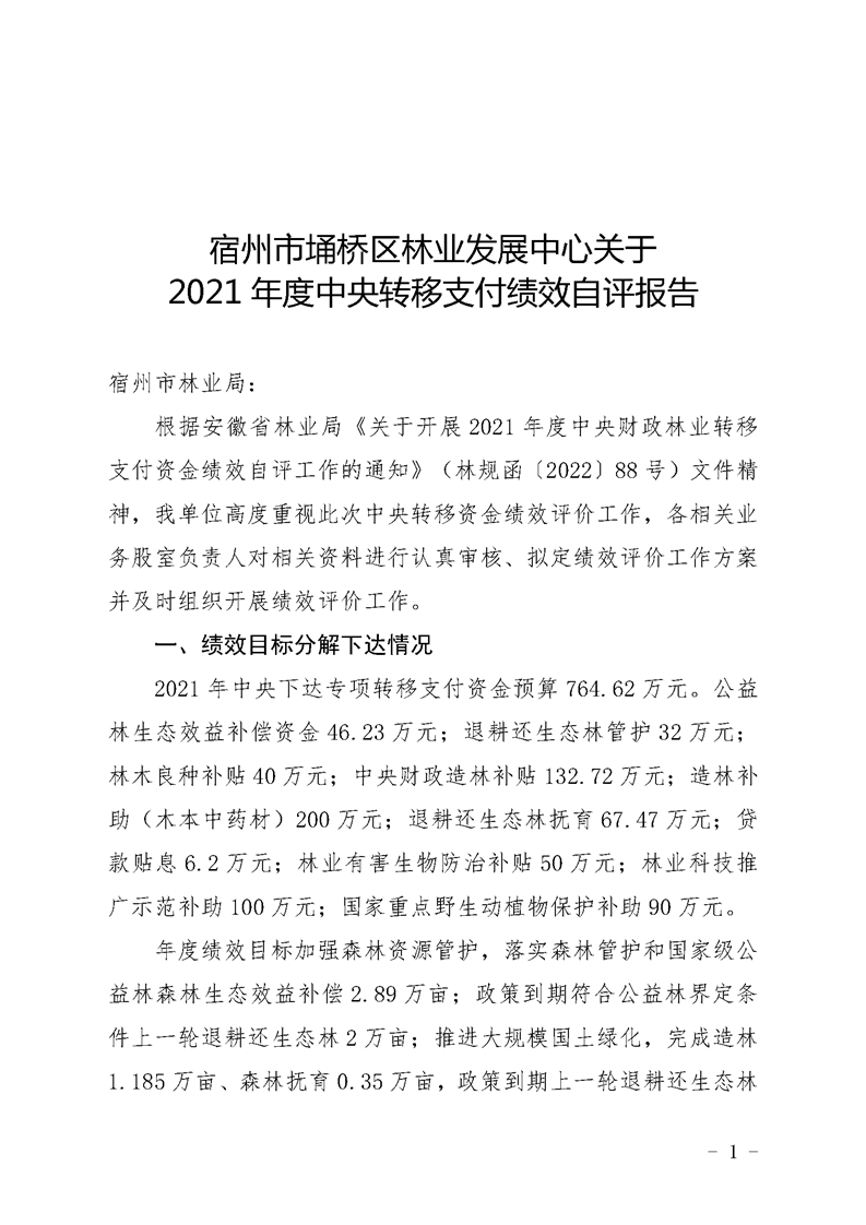 | 名称: | 宿州市埇桥区林业发展中心关于2021年度中央转移支付绩效自评报告 | ||