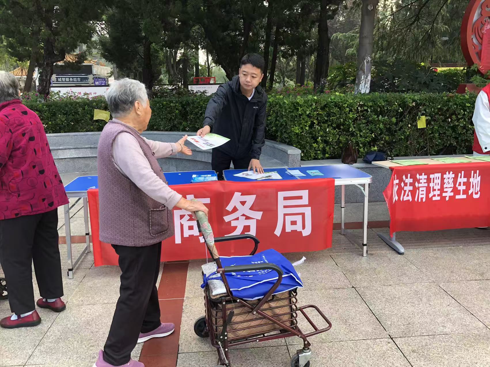 此次活动主题为“依法清理孳生地 共享健康秋冬季”。活动现场,区商务局设立展台,向来往群众散发宣传资料,解答群众问题,积极与群众互动交流。