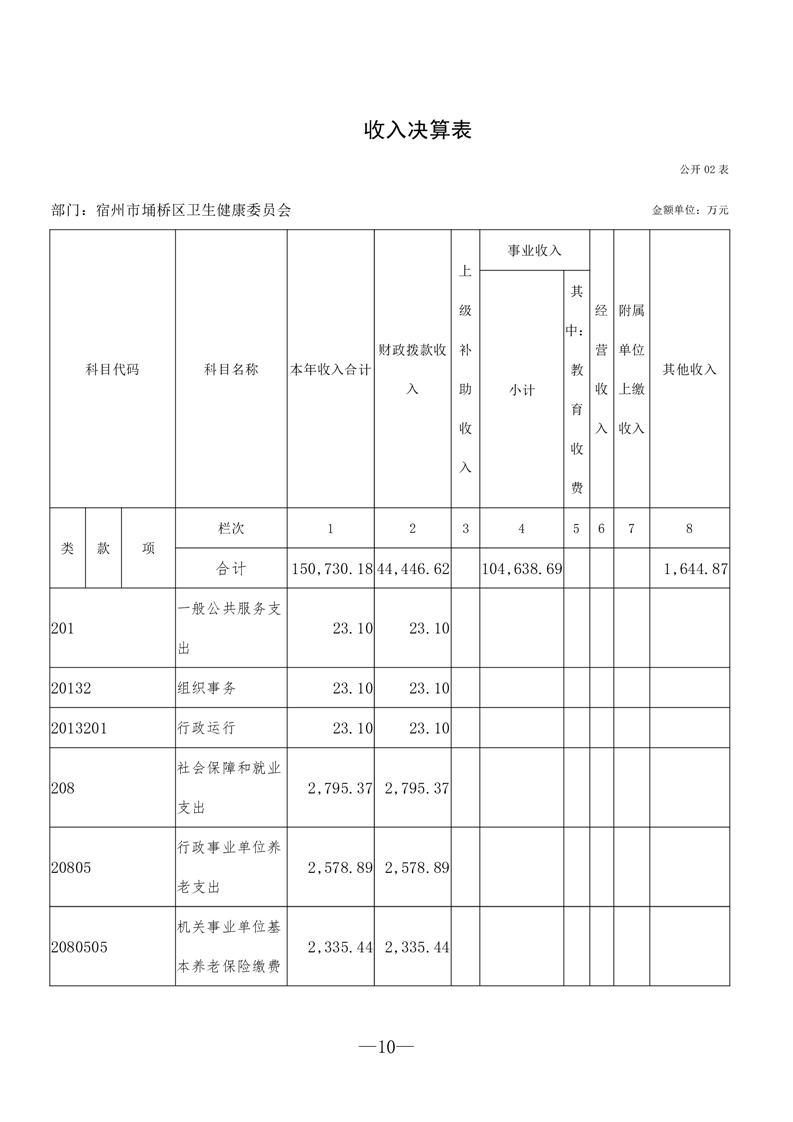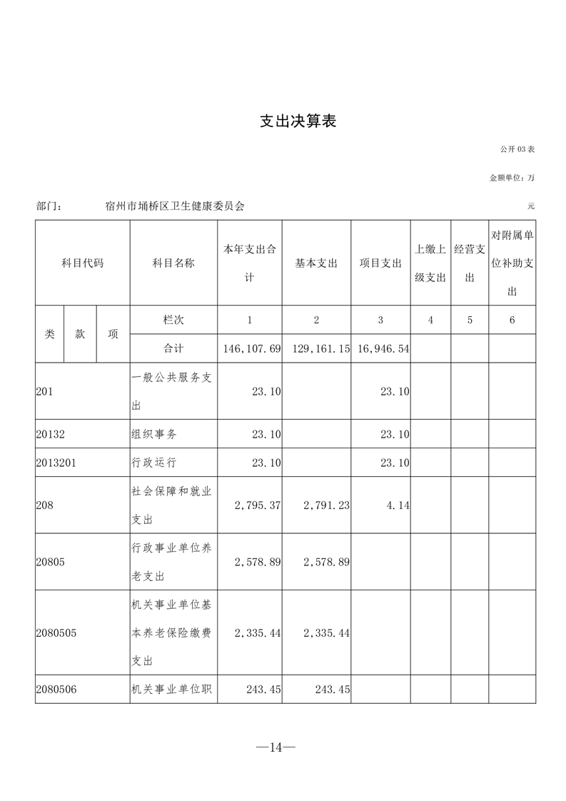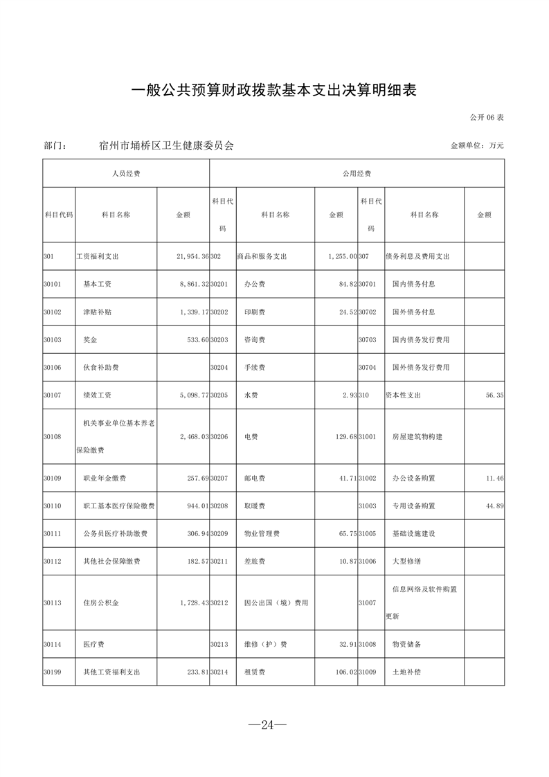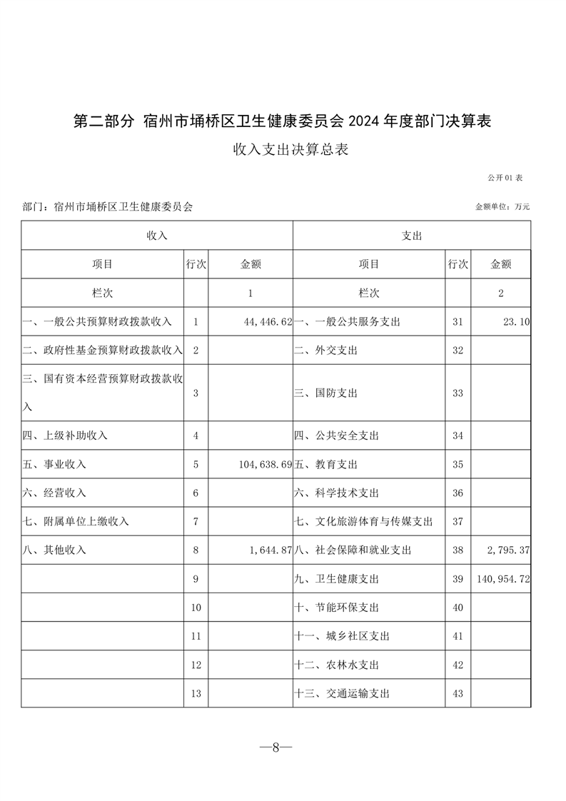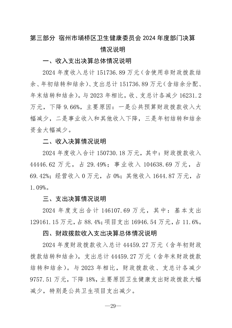 宿州市埇桥区卫生健康委员会2024年度部门决算