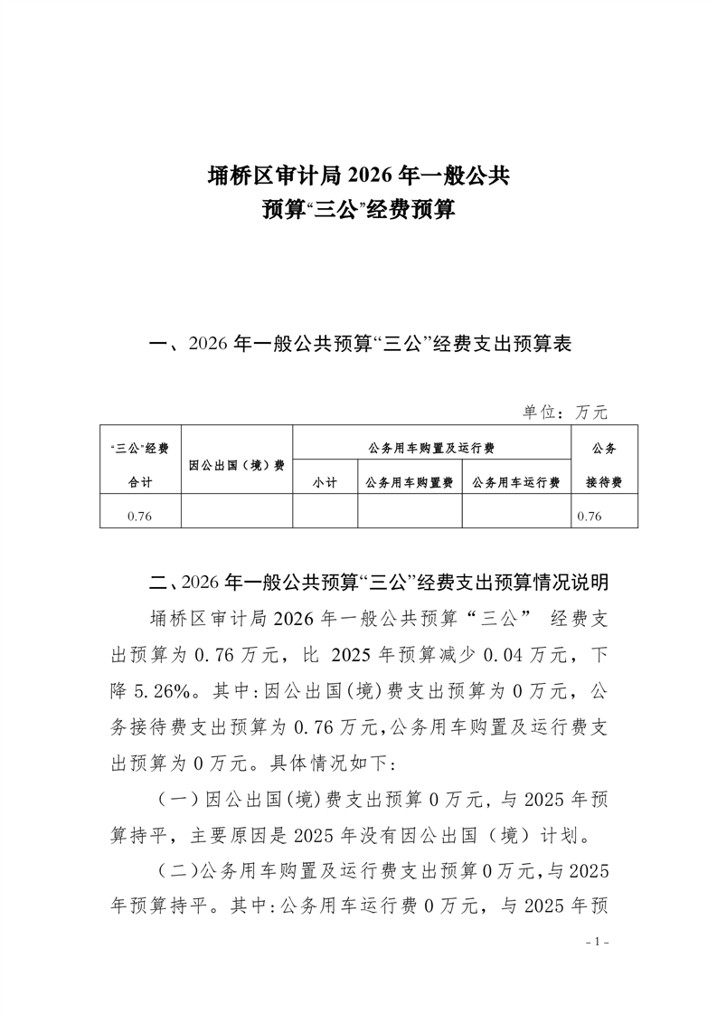 埇桥区审计局2026年一般公共预算“三公”经费预算