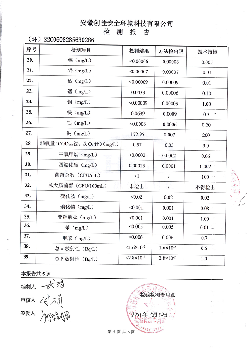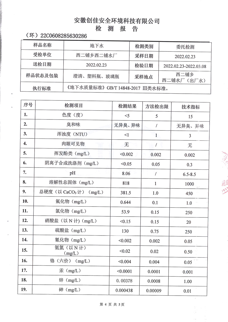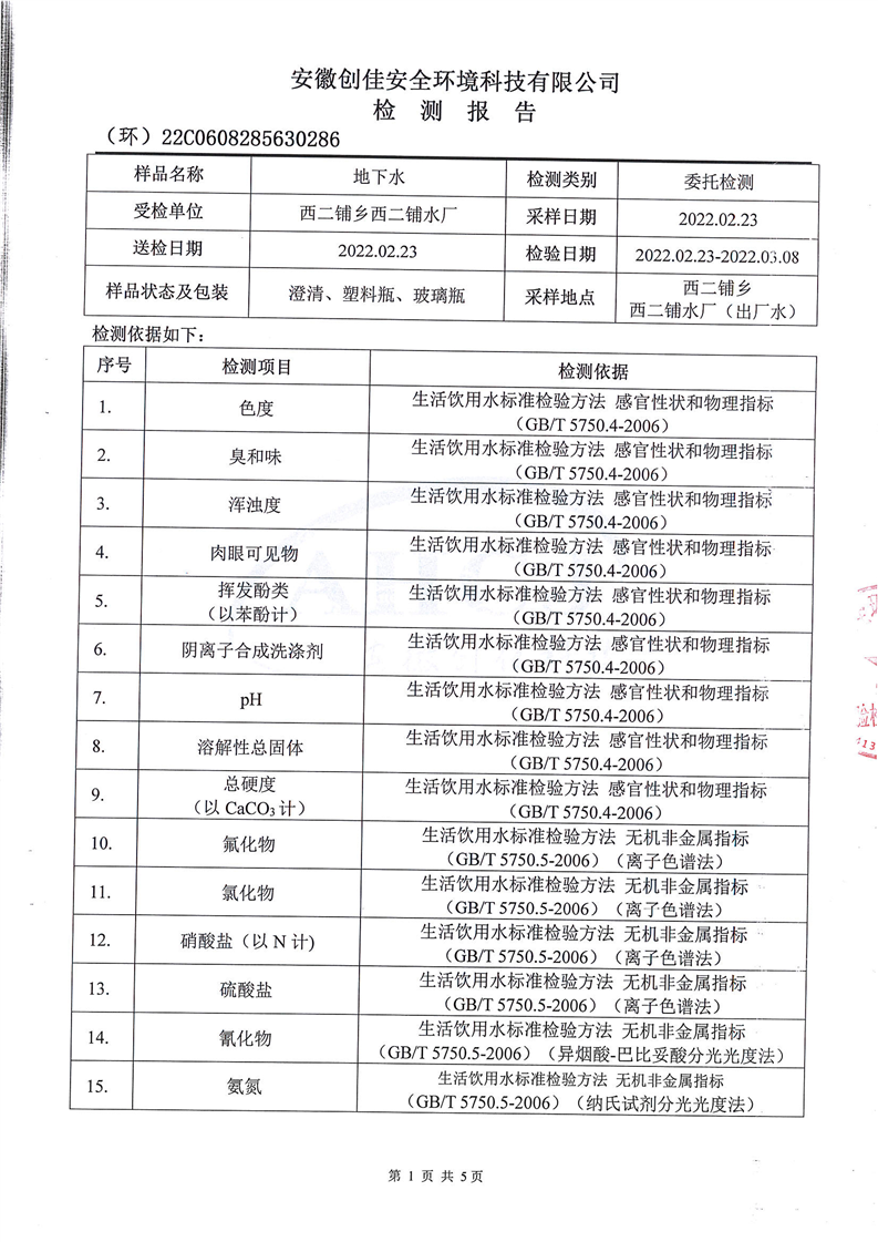 2022年第一季度水龙头水质信息