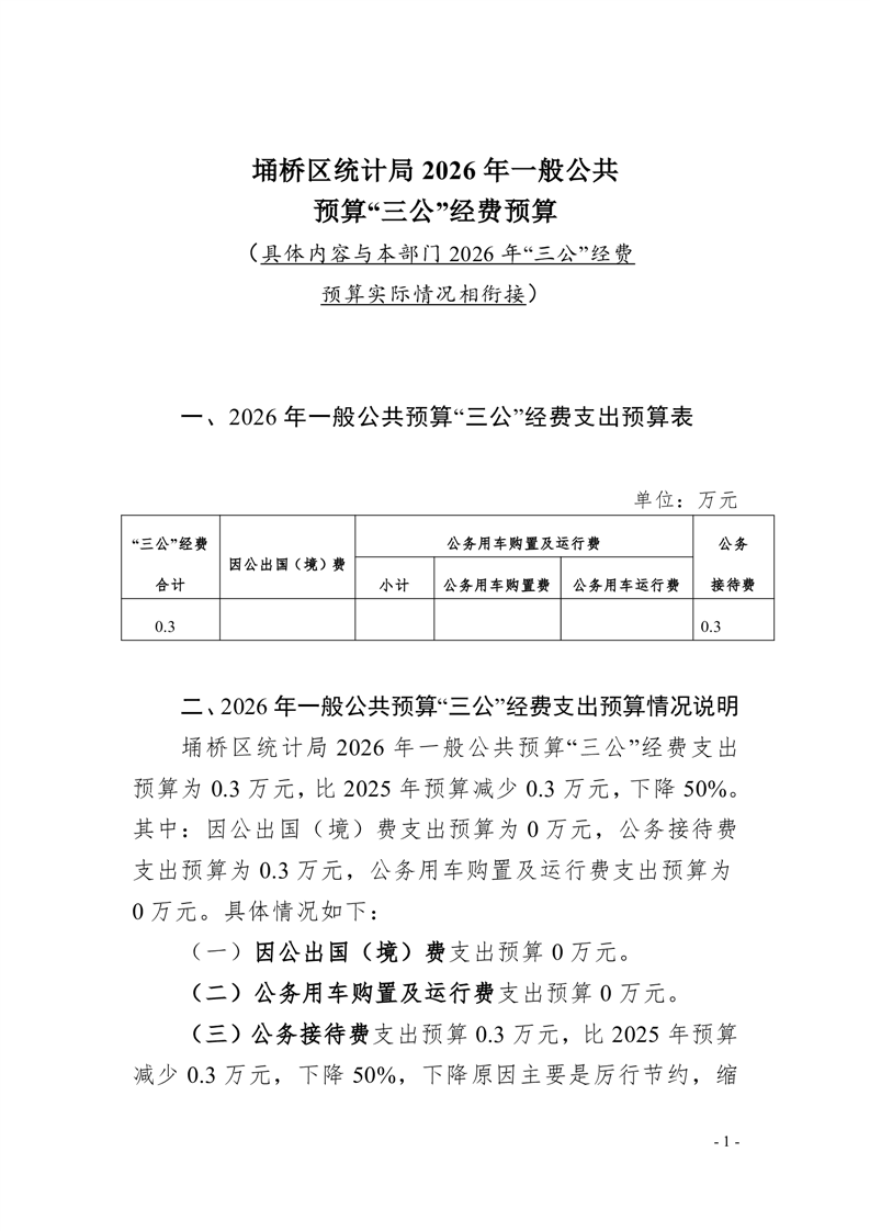 埇桥区统计局2026年一般公共预算“三公”经费预算