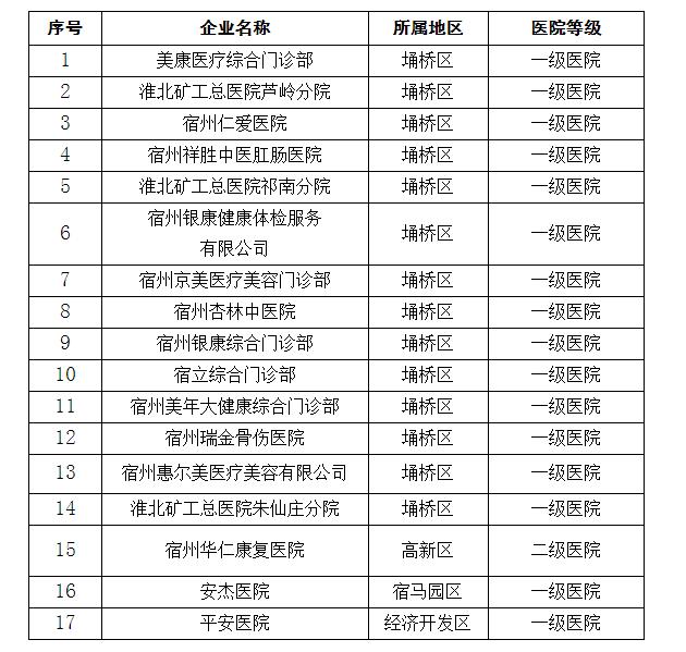 为进一步规范医疗机构药品使用质量管理,确保人民群众用药安全,根据安徽省药品监督管理局《关于进一步加强安徽省医疗机构规范药房(库)建设的通知》要求,经医疗机构自查,有关部门联合检查验收,埇桥区美康医疗综合门诊部等14家医疗机构及宿马园区安杰医院、经济开发区平安医院、高新区宿州华仁康复医院通过“规范药房(库)”验收,现予以公示。