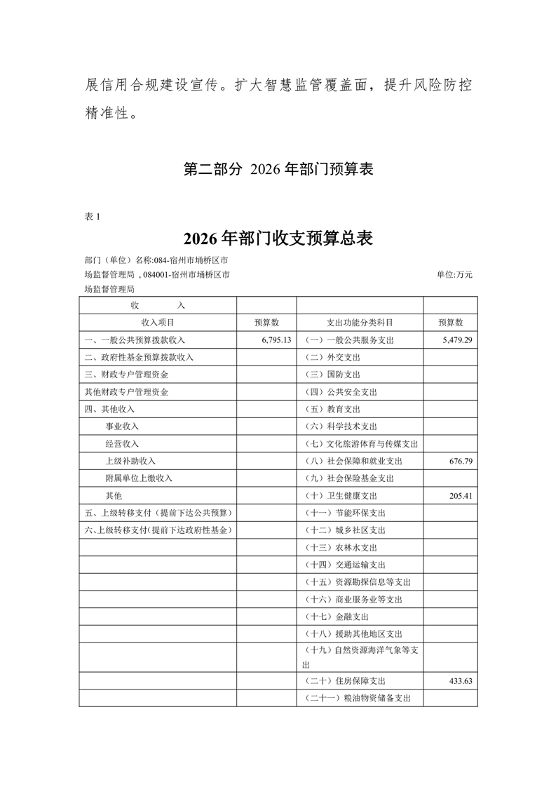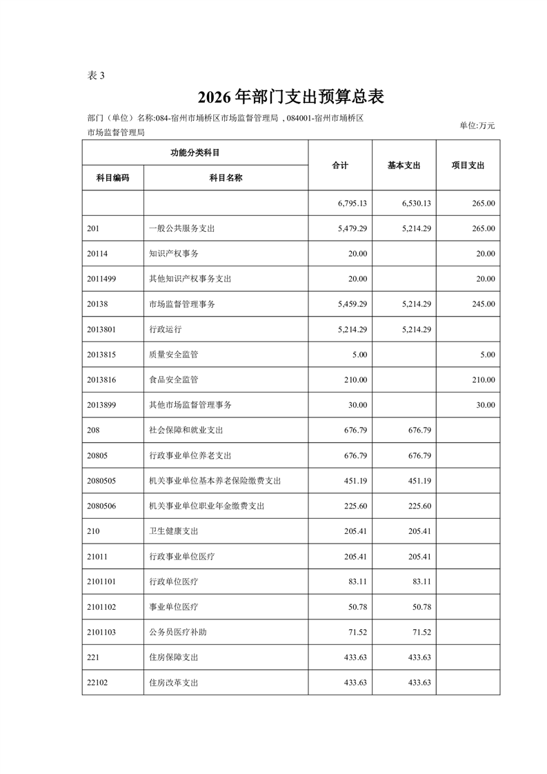 | 名称: | 埇桥区市场监督管理局2026年部门预算公开说明 | ||