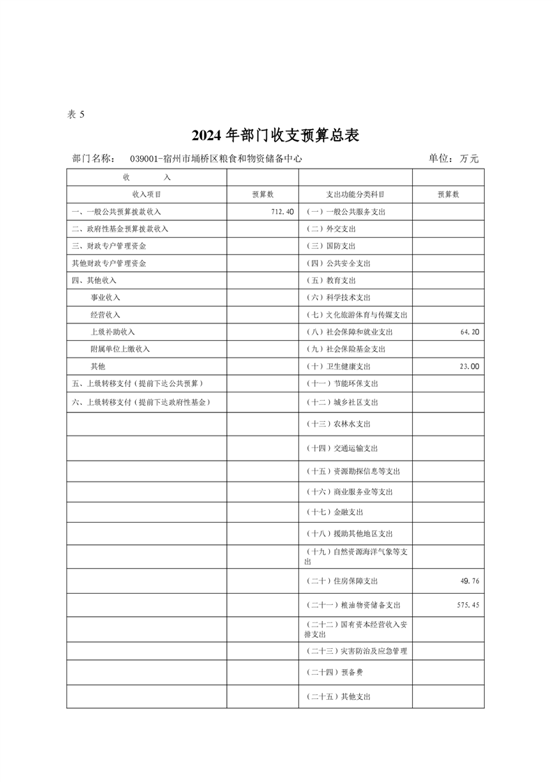 | 名称: | 埇桥区粮食和物资储备中心2024年部门预算 | ||