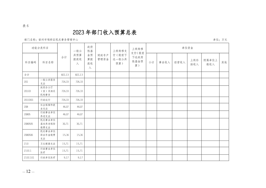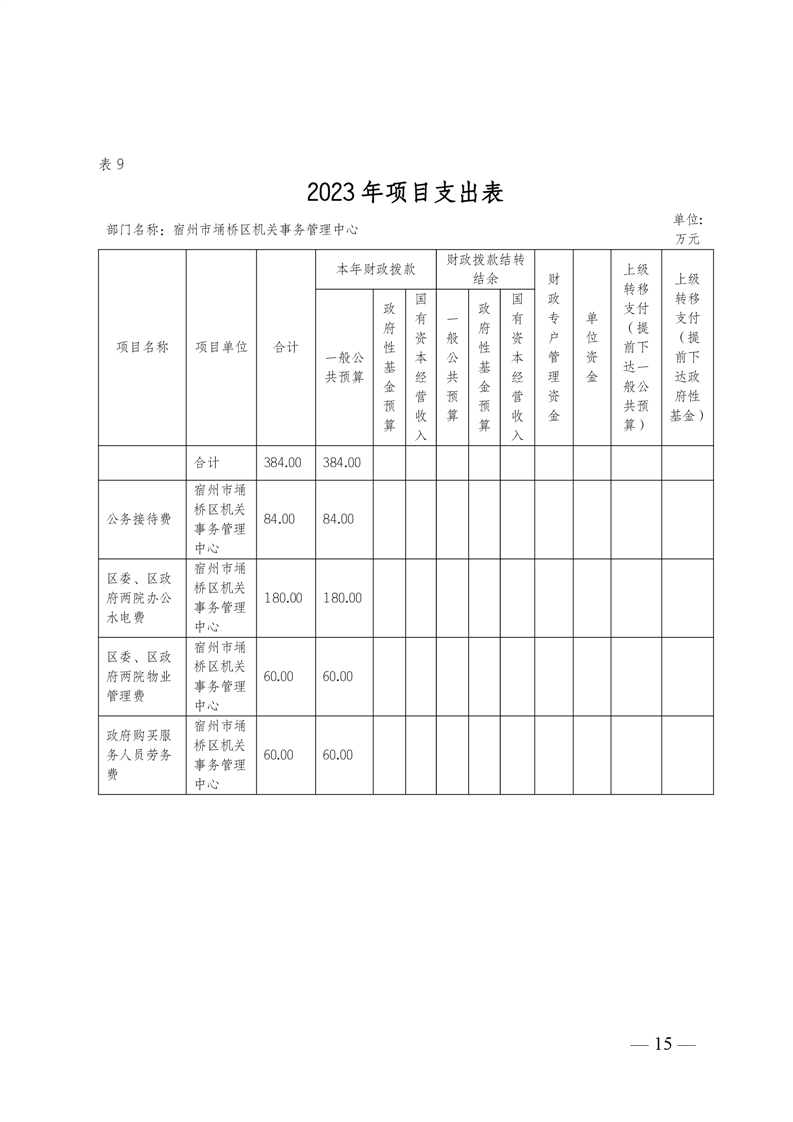 埇桥区机关事务管理中心2023年部门预算
