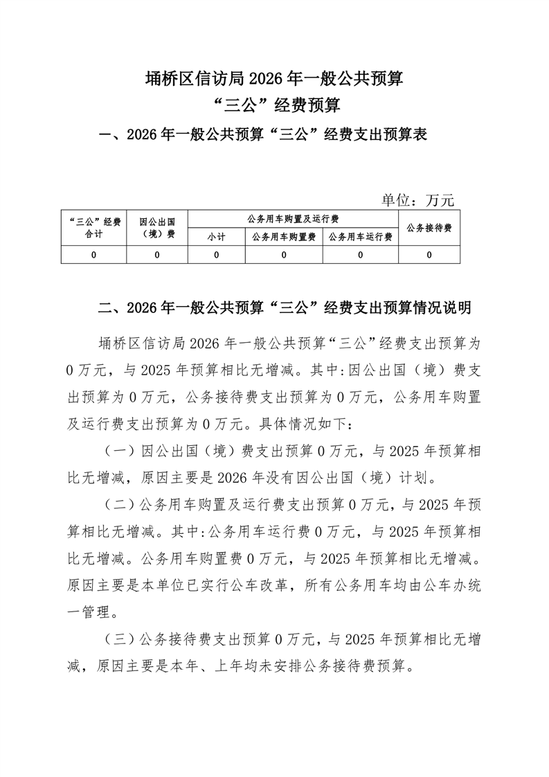 2026年埇桥区信访局三公经费预算公开说明
