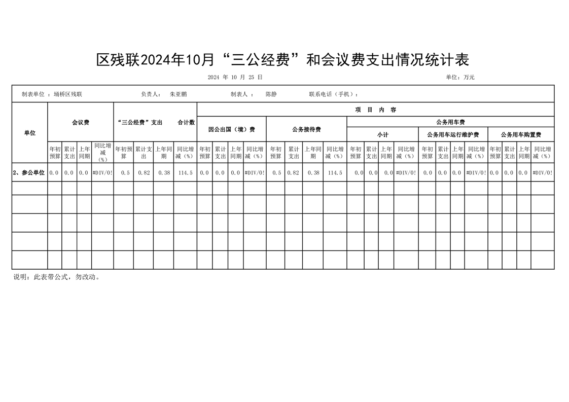 | 名称: | 2024年10月份埇桥区残联“三公”经费和会议费支出情况统计表 | ||