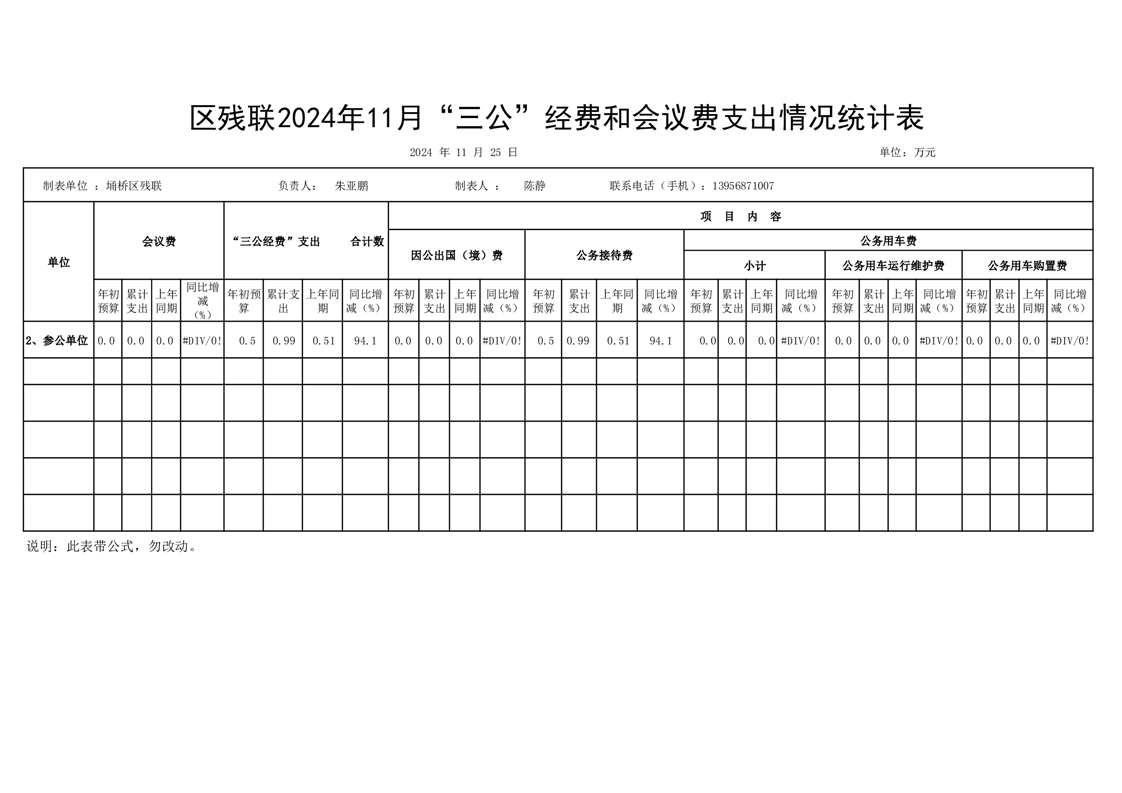 | 名称: | 2024年11月份埇桥区残联“三公”经费和会议费支出情况统计表 | ||