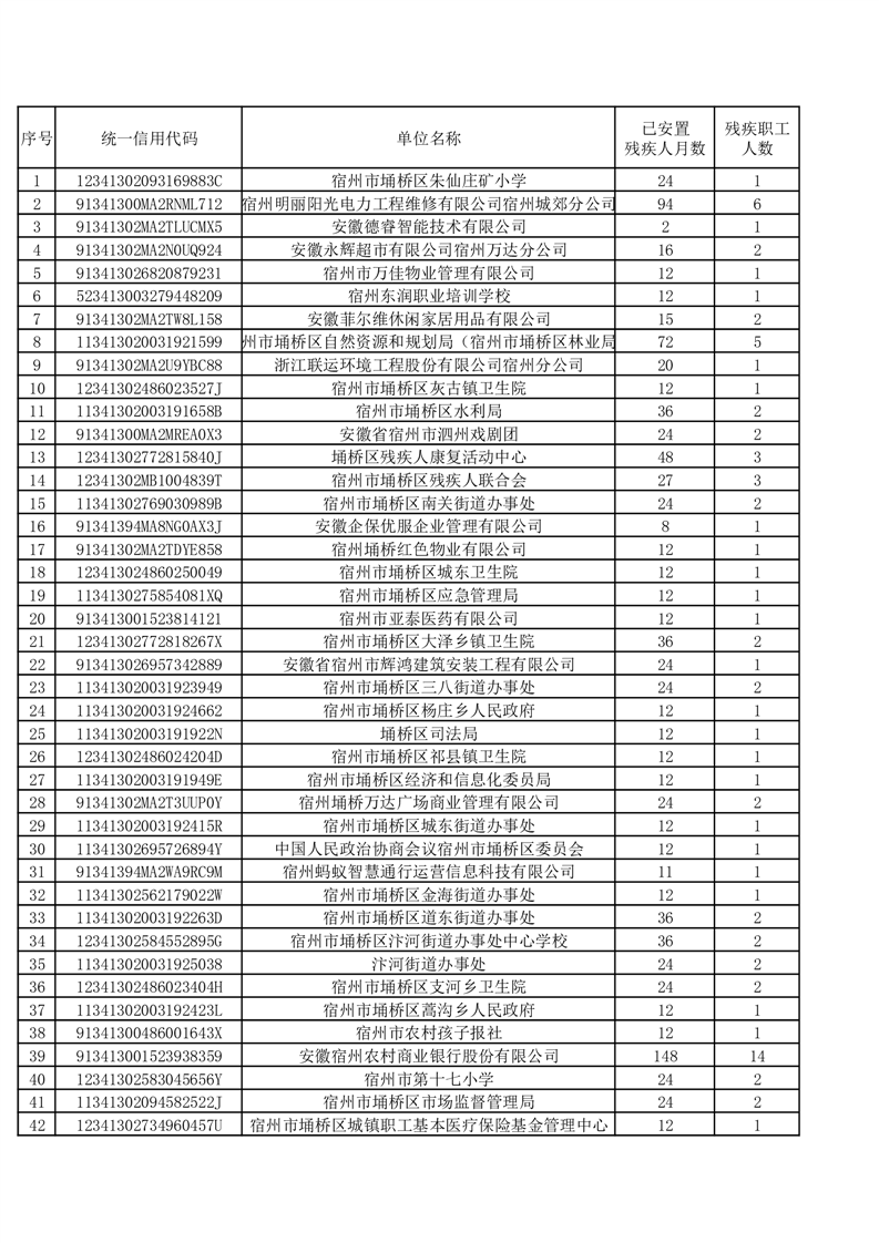 | 名称: | 【残疾人就业】埇桥区2025年度用人单位按比例安排残疾人就业情况公示名单 | ||