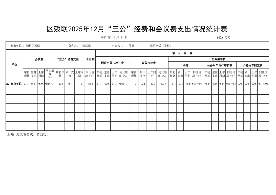 | 名称: | 2025年12月份埇桥区残联“三公”经费和会议费支出情况统计表 | ||