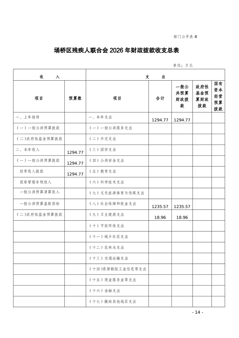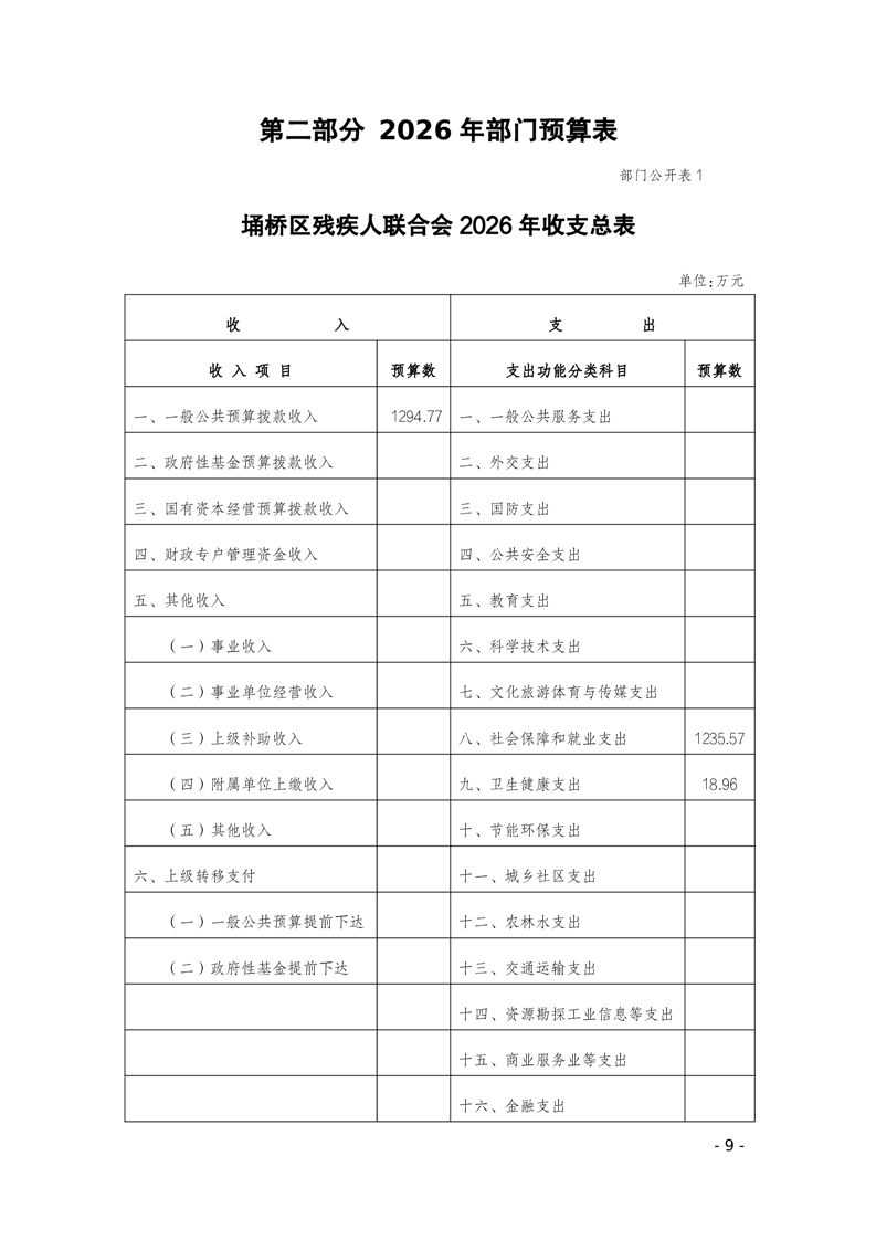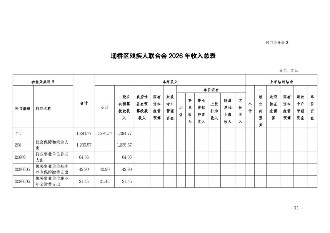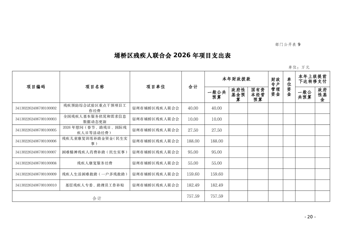埇桥区残疾人联合会2026年部门预算