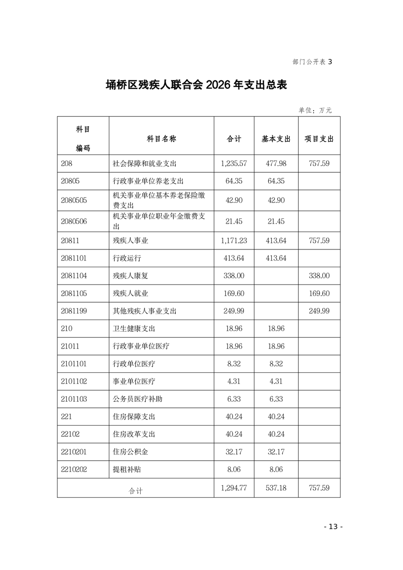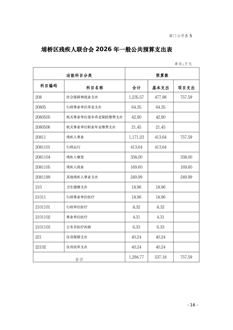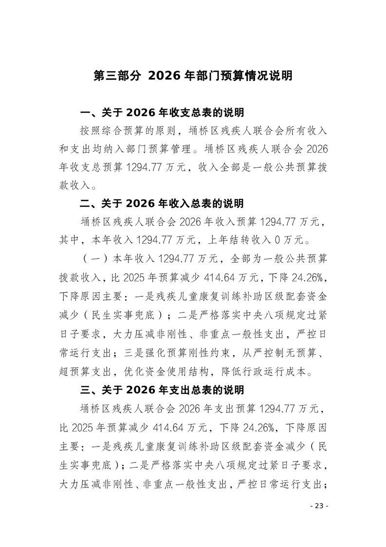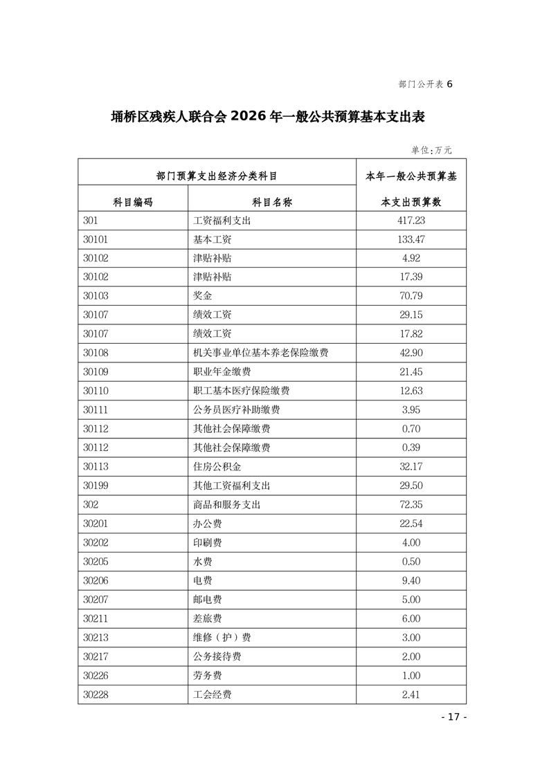 埇桥区残疾人联合会2026年部门预算