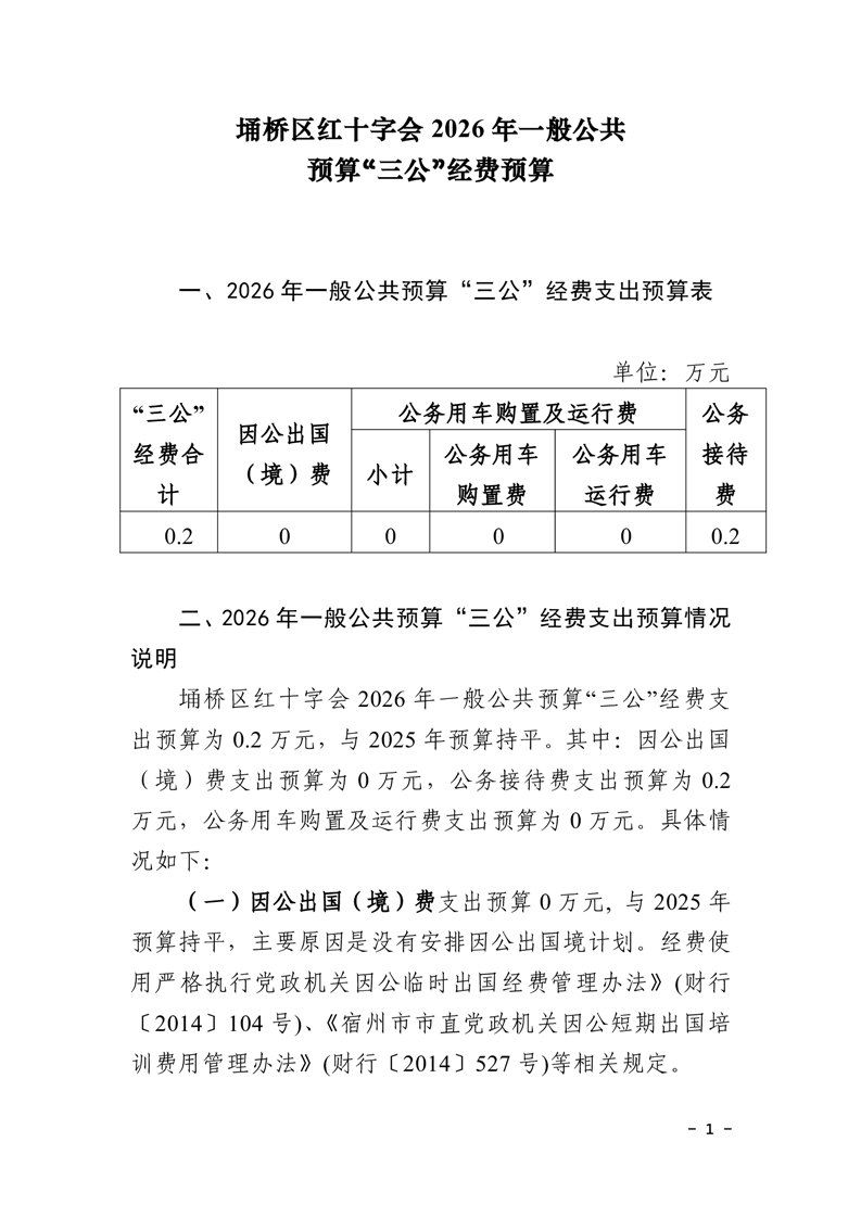 埇桥区红十字会2026年“三公”经费预算公开
