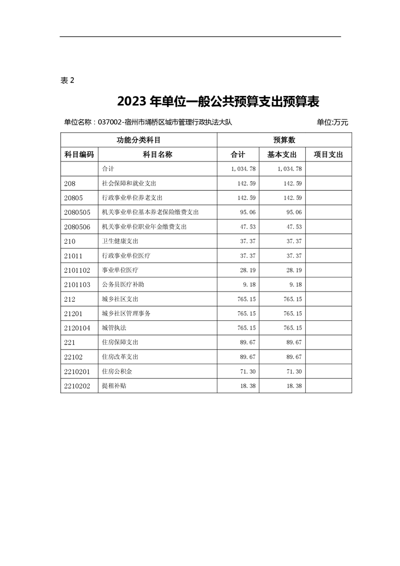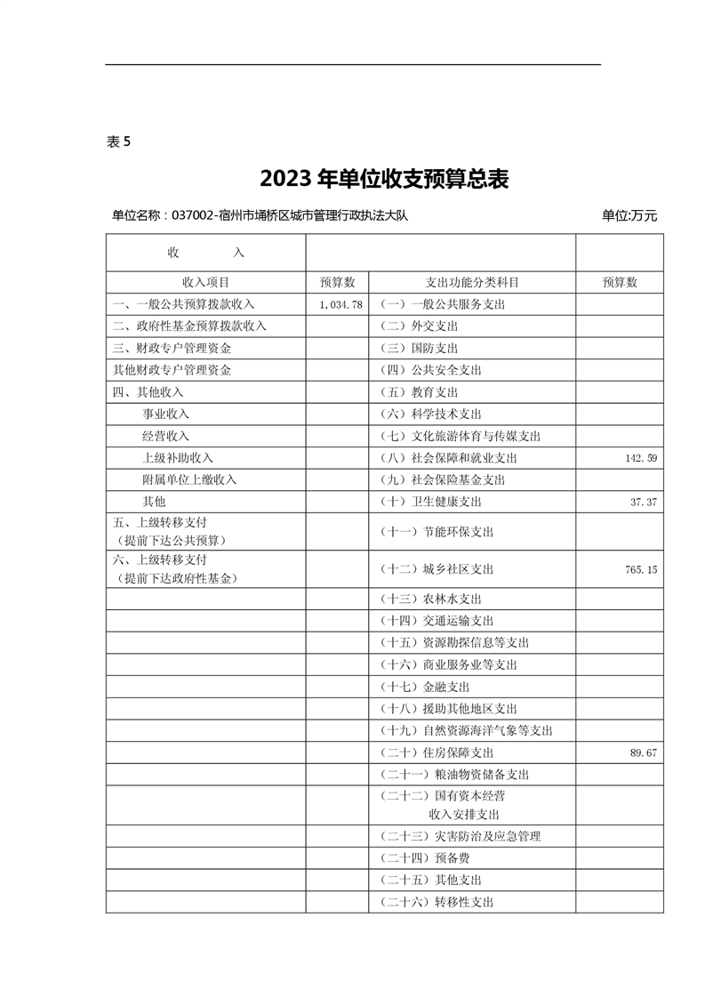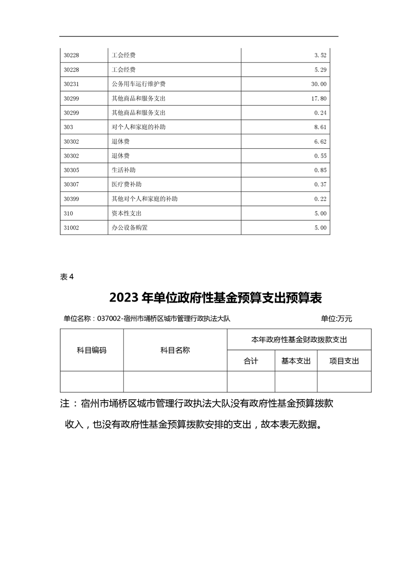 宿州市埇桥区城市管理行政执法大队2023年单位预算