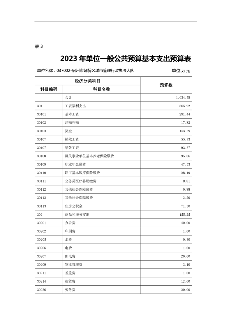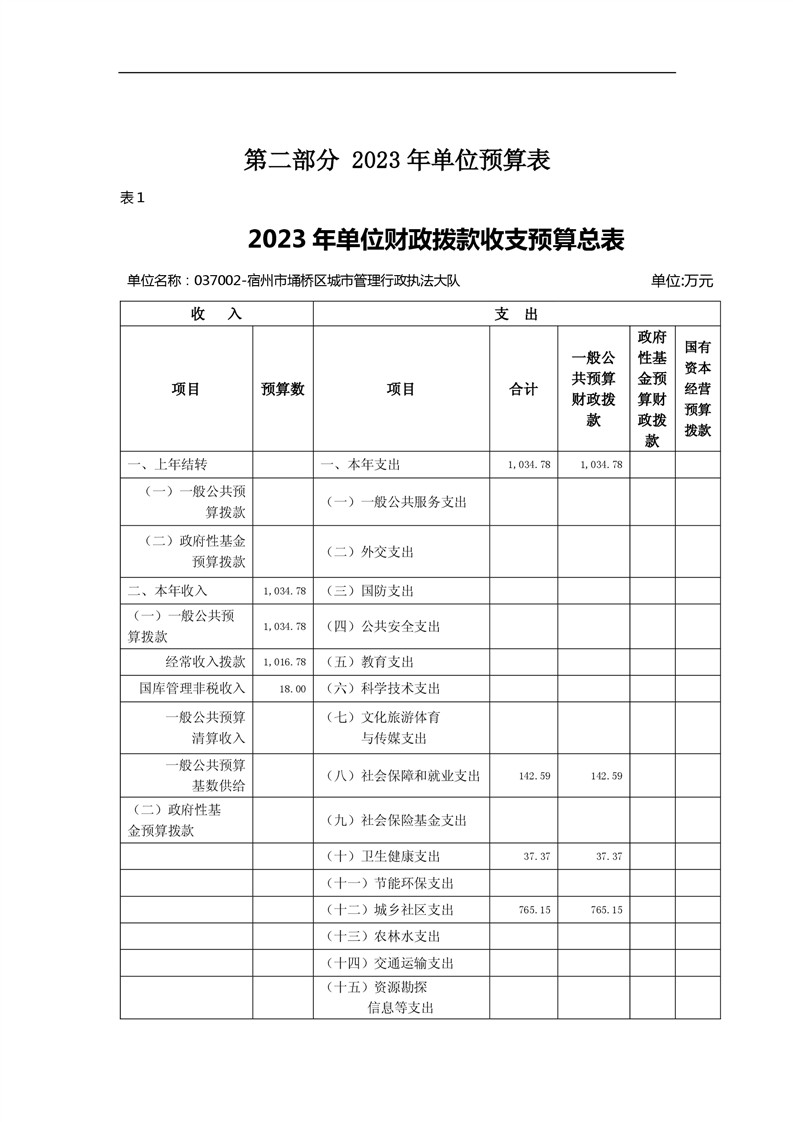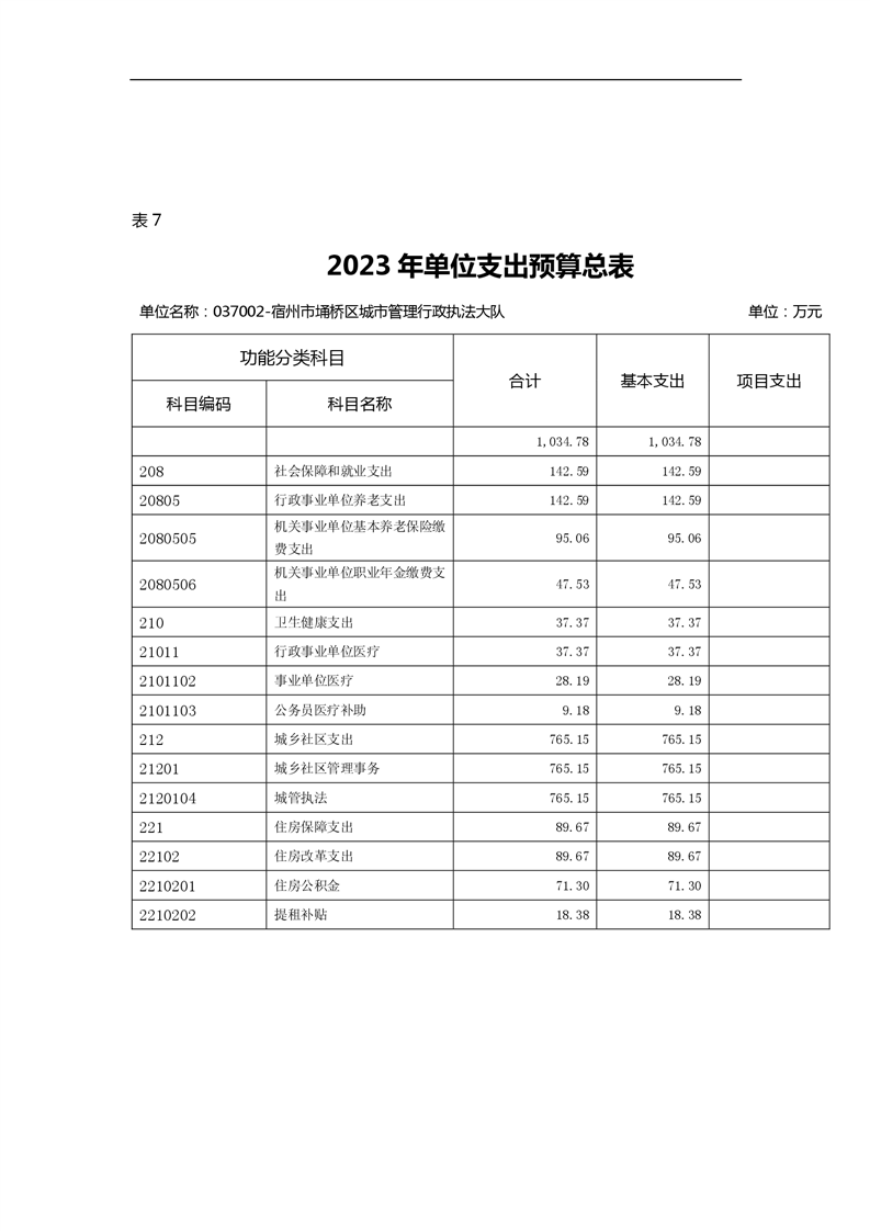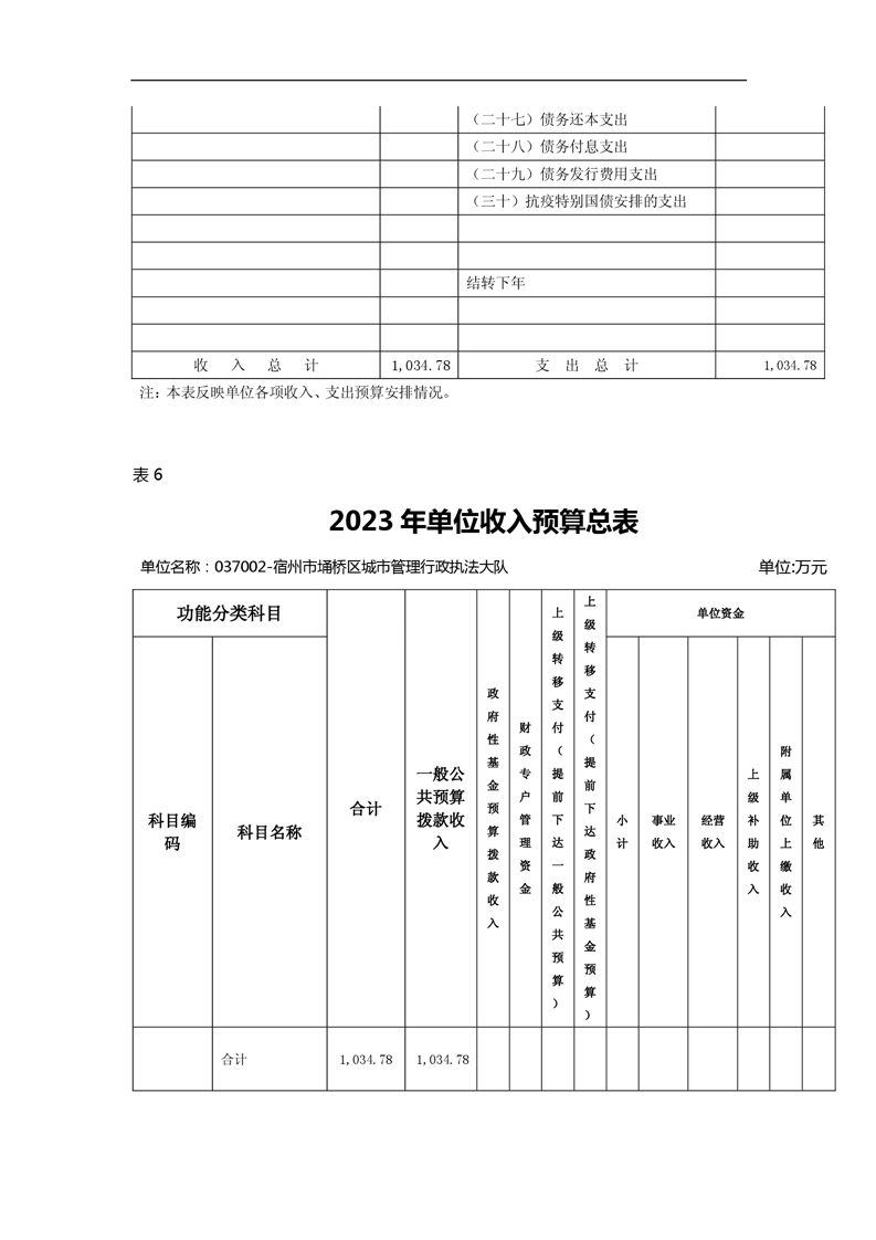 宿州市埇桥区城市管理行政执法大队2023年单位预算