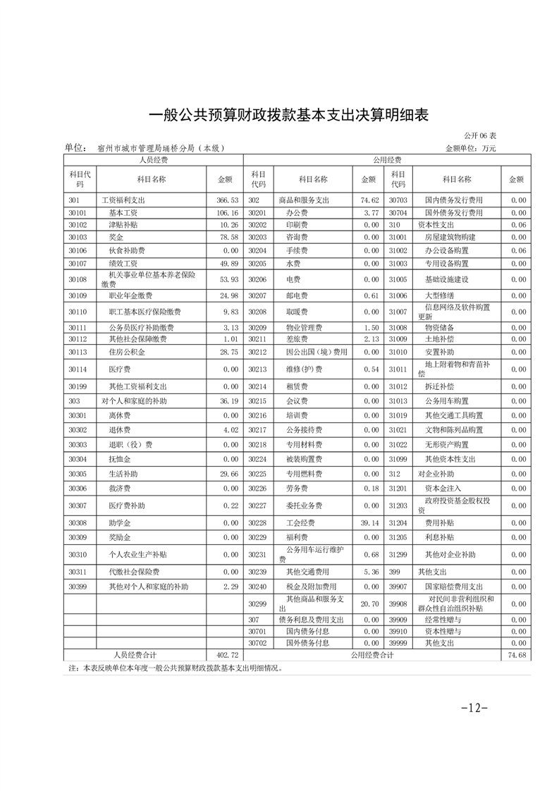 | 名称: | 原宿州市城市管理局埇桥分局(本级)2023年度单位决算 | ||