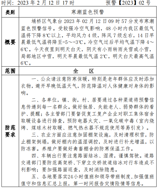 【自然灾害类预警信息】寒潮蓝色预警