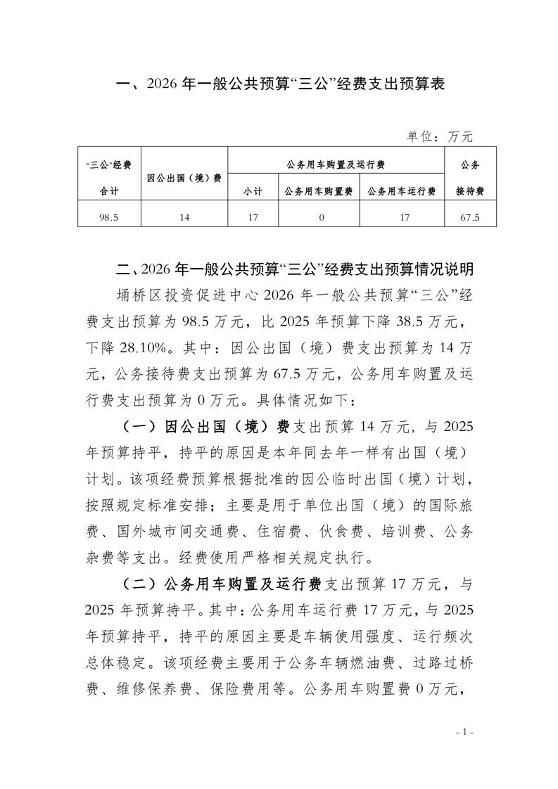 宿州市埇桥区投资促进中心2026年一般公共预算“三公”经费预算