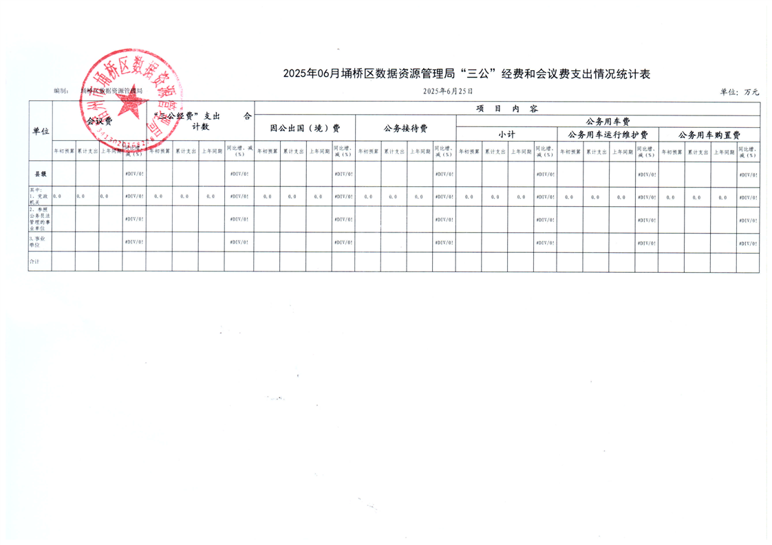 | 名称: | 2025年6月埇桥区数据资源管理局“三公”经费和会议费支出情况统计表 | ||