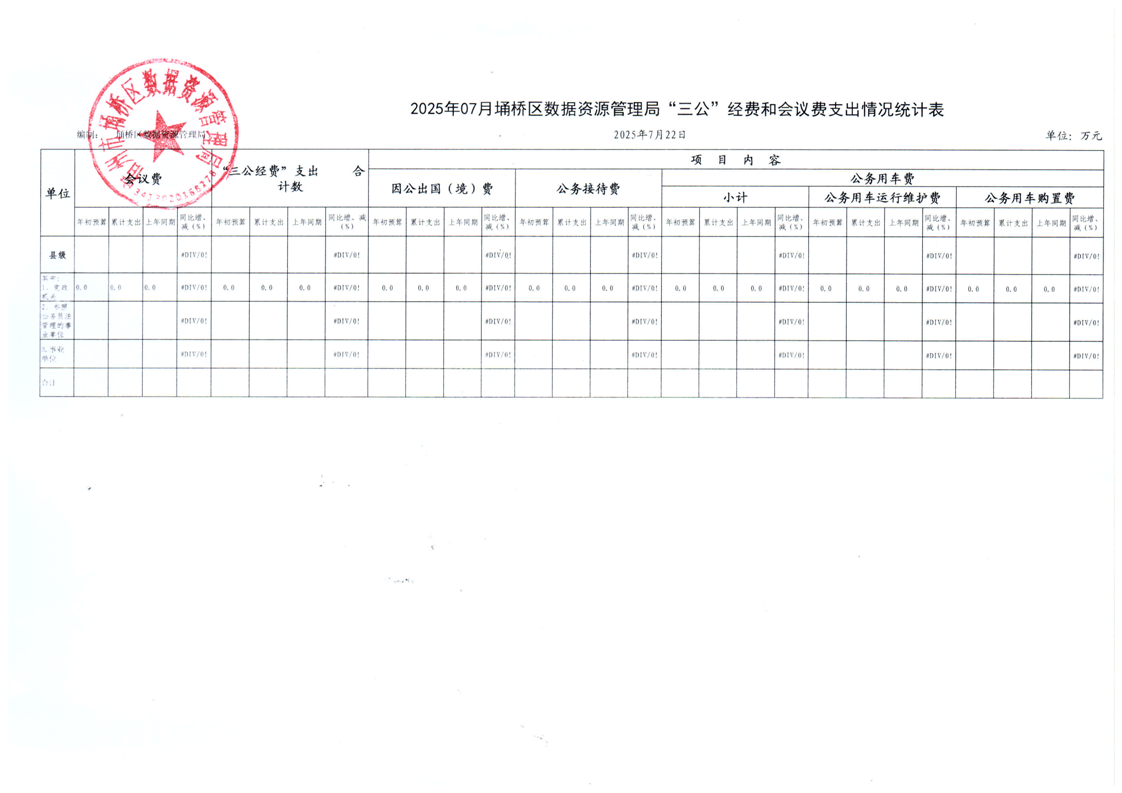 | 名称: | 2025年7月埇桥区数据资源管理局“三公”经费和会议费支出情况统计表 | ||