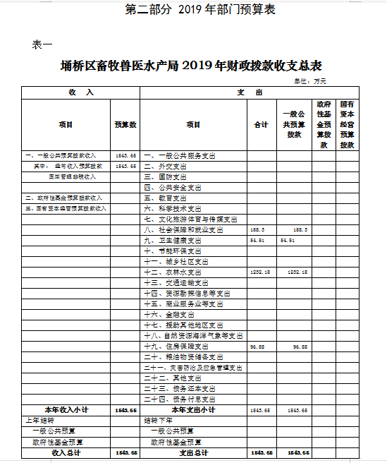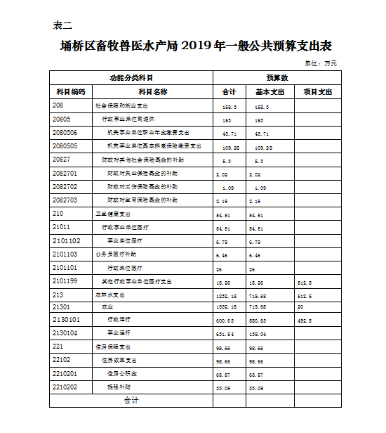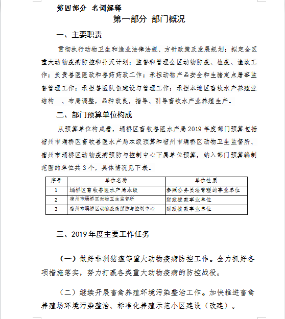 埇桥区畜牧兽医水产局2019年部门预算说明