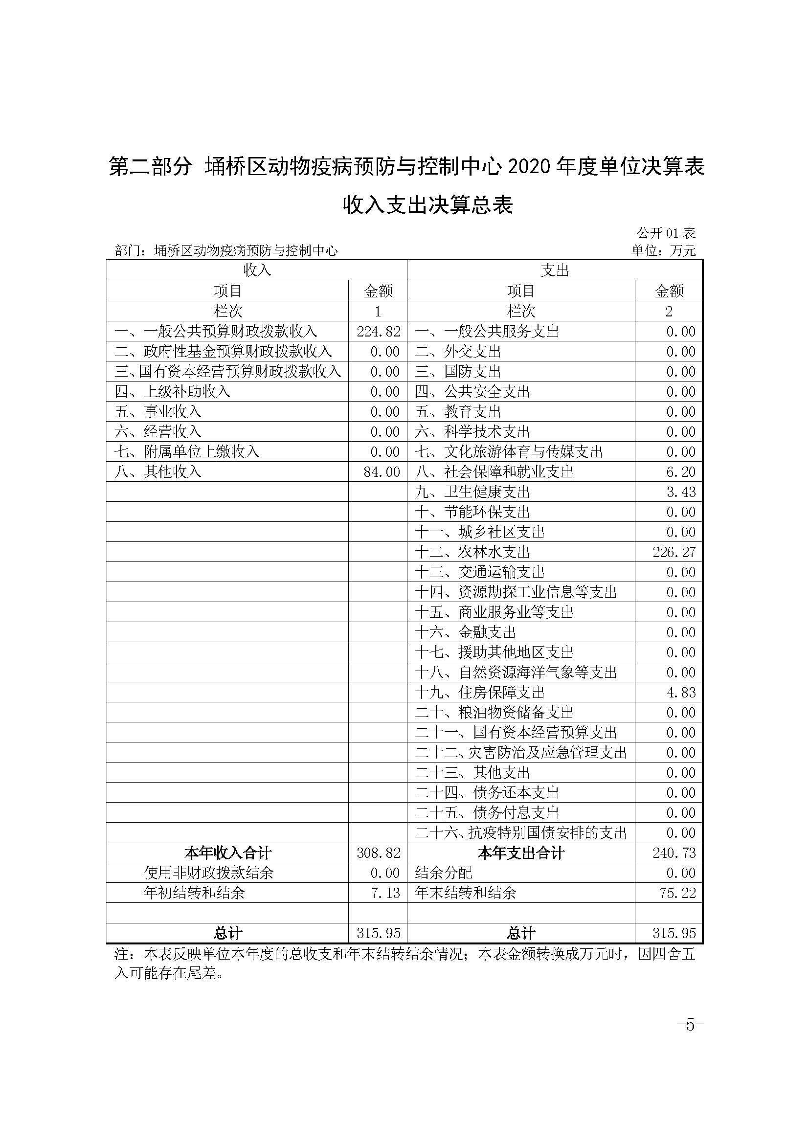 宿州埇桥区动物疫控中心2020年度单位决算
