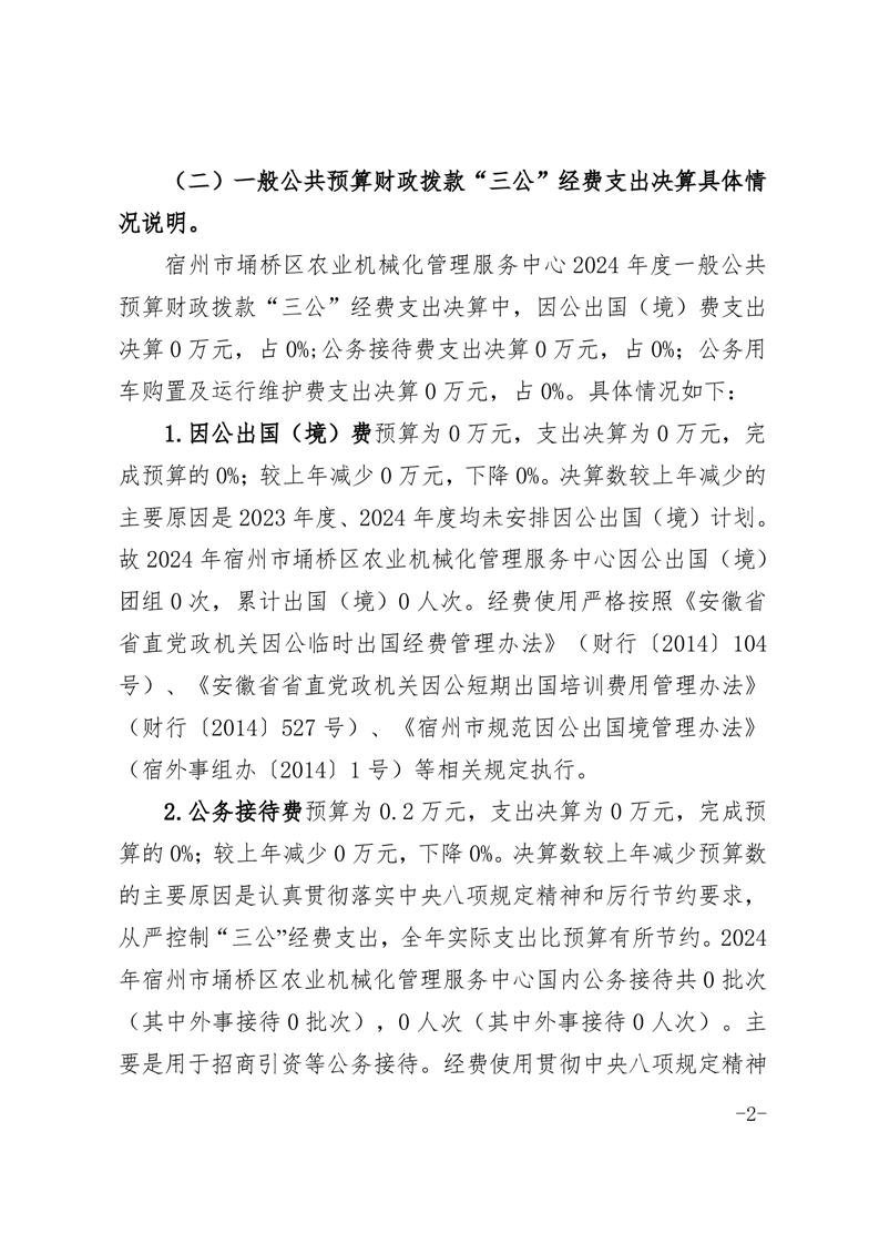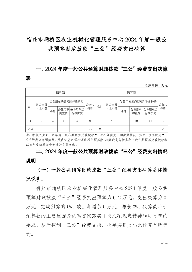 名称: | 宿州市埇桥区农业机械化管理服务中心2024年度一般公共预算财政拨款“三公”经费支出决算 | ||