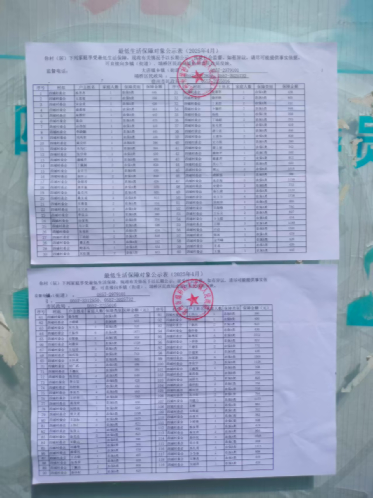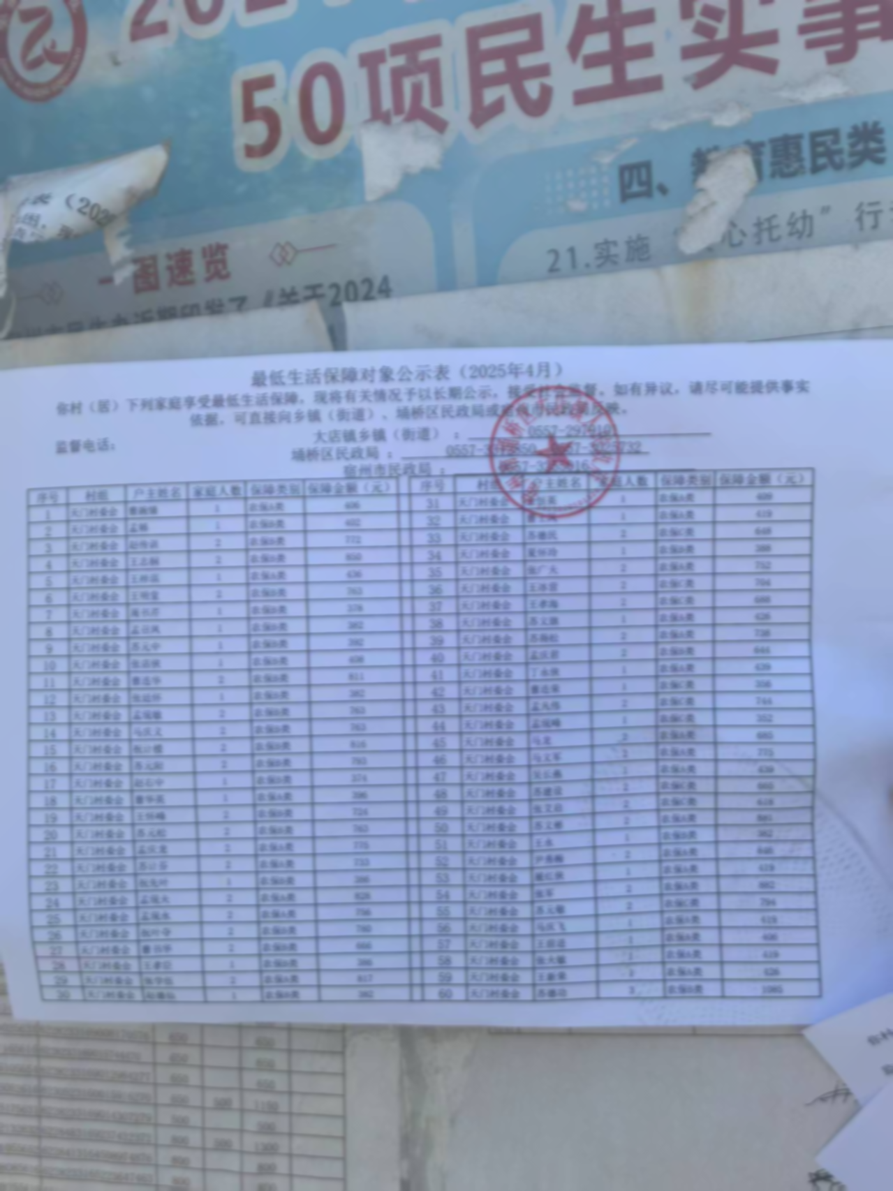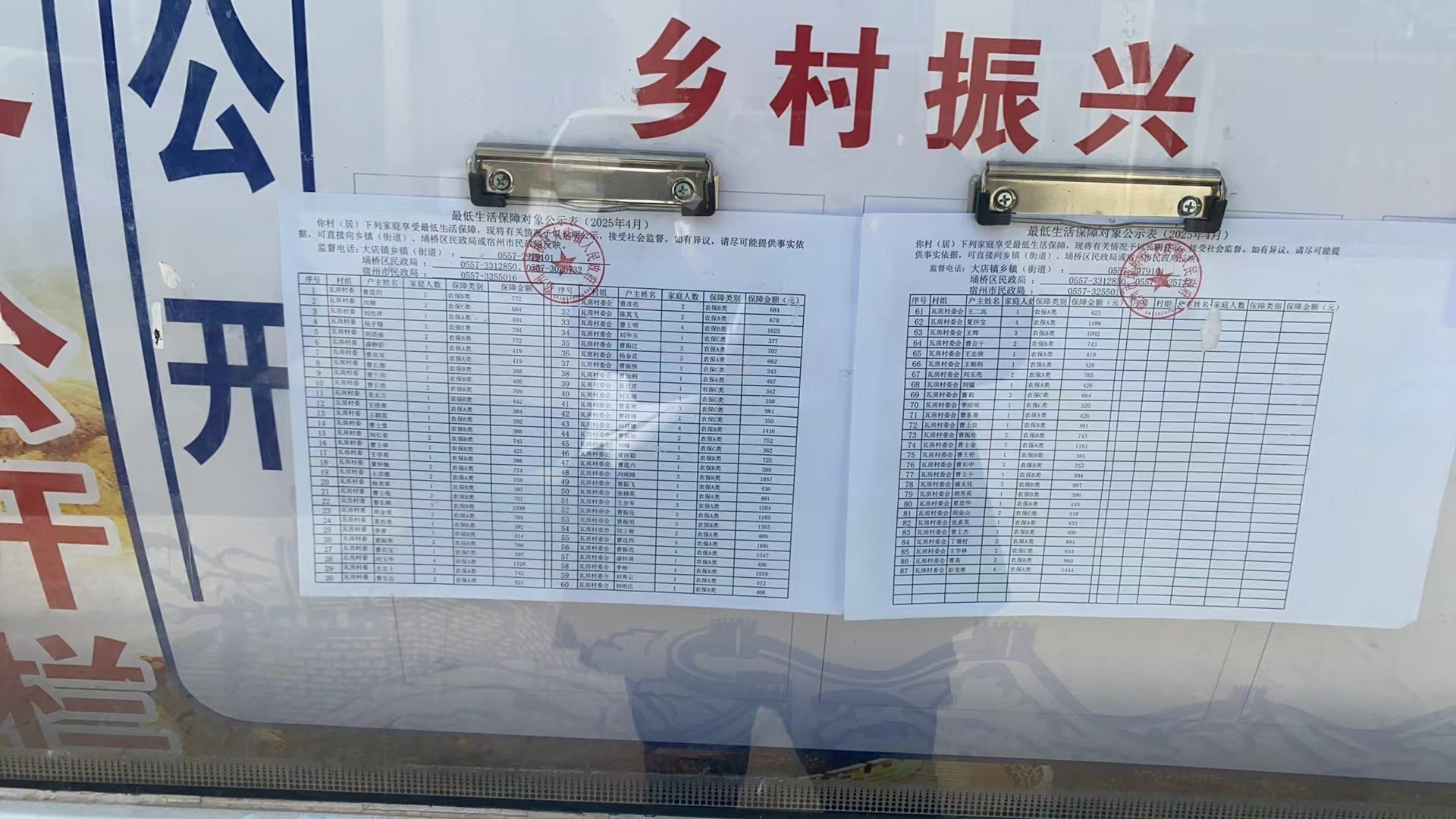 | 名称: | 大店镇2025年第二季度村务公开栏惠民惠农补贴结果 | ||