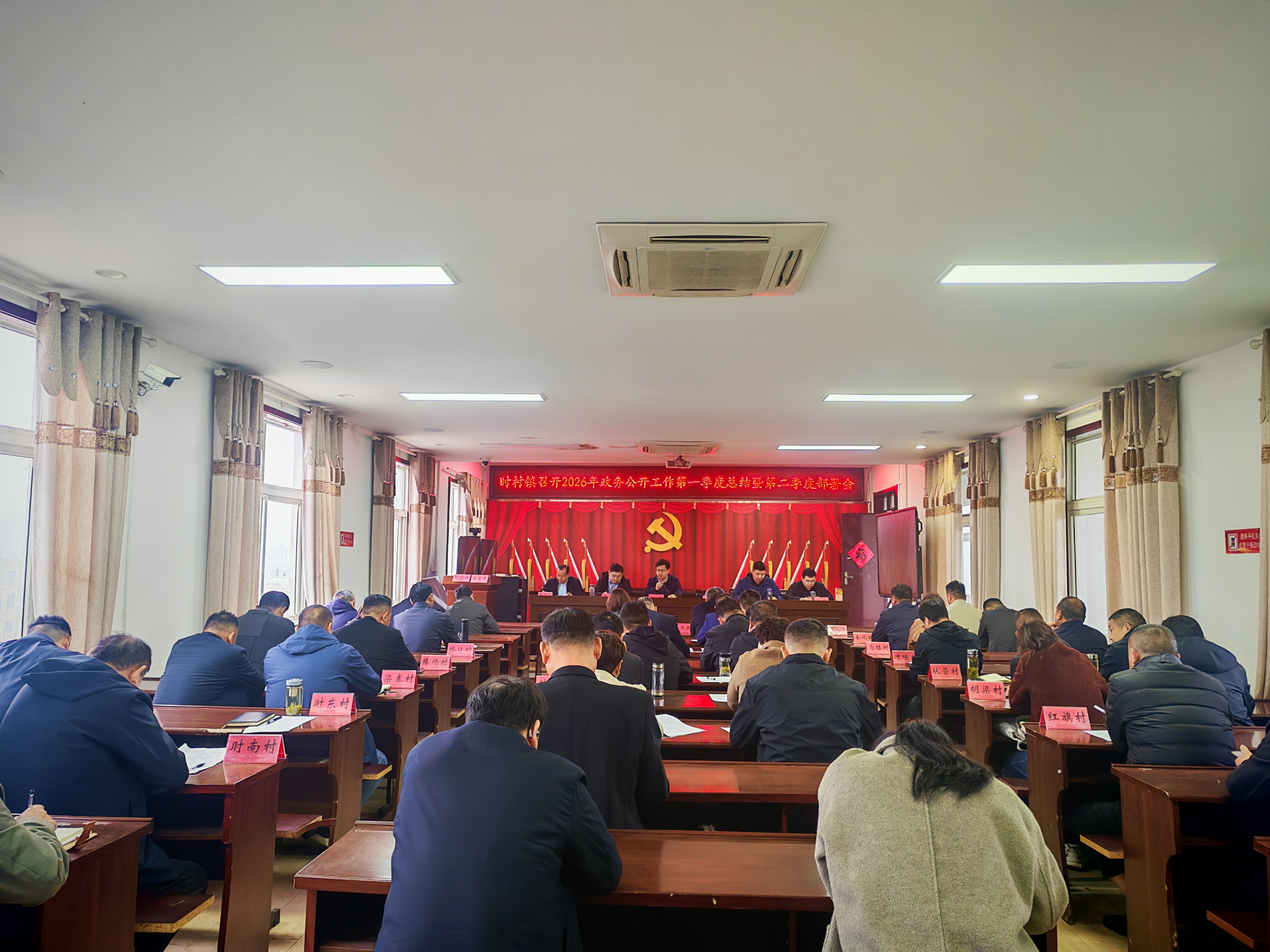 为切实提升政务服务质效,2026年3月30日,时村镇在四楼会议室召开2026年政务公开工作第一季度总结暨第二季度部署会,镇长主持会议,班子成员、镇各站所负责人及发布员参会。