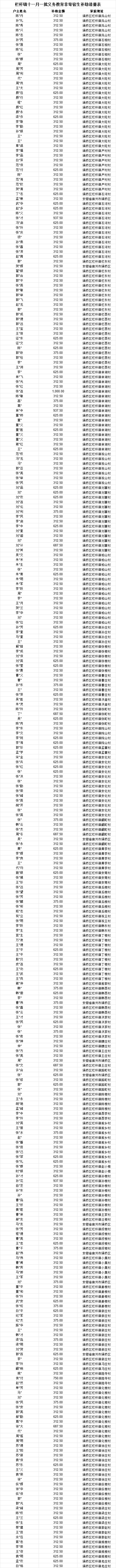 栏杆镇十一月一批义务教育非寄宿生补助清册表