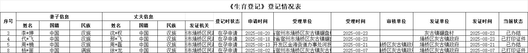 名称: | 灰古镇2025年8月行政权力事项办理结果统计表(生育登记) | ||
