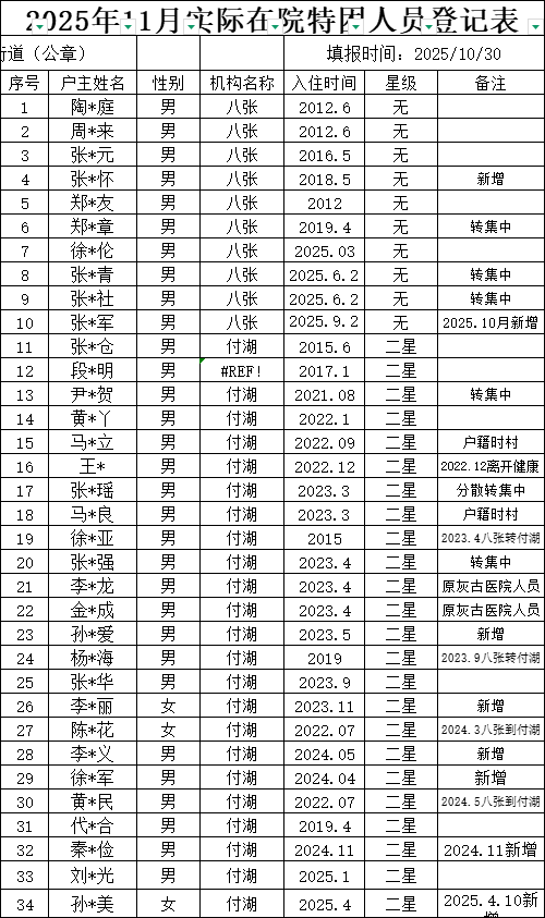 灰古镇2025年11月行政权力事项办理结果统计表(在院特困人员)