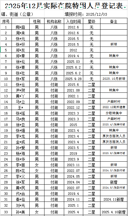 灰古镇2025年12月行政权力事项办理结果统计表(在院特困人员)
