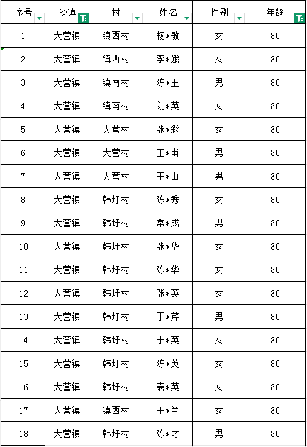 【办理结果】行政确认:大营镇2025年10月高龄津贴新增表