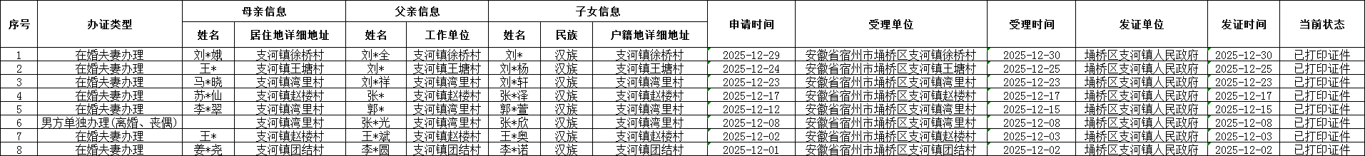 | 名称: | 【办理结果】行政确认:支河镇2025年12月份独生子女光荣证发放名单 | ||