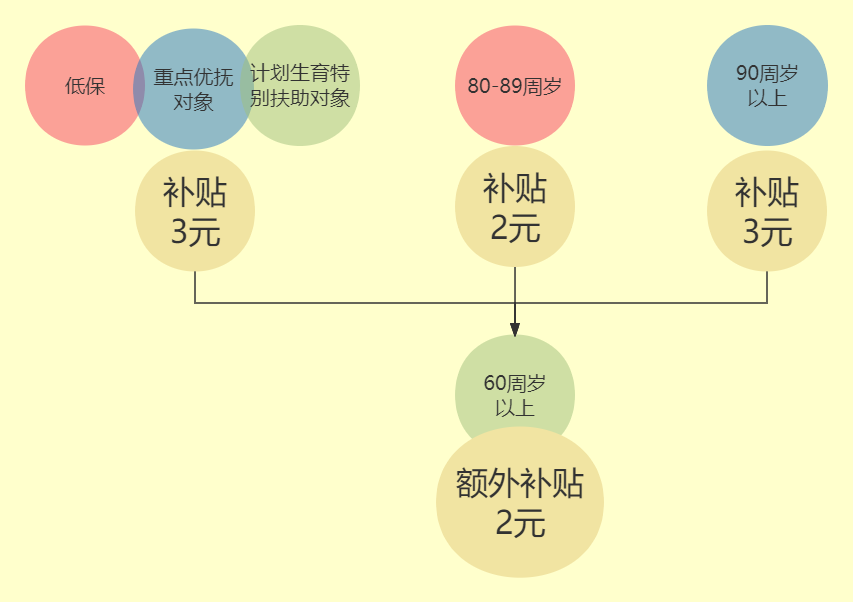 低保的老人、重点优抚对象中的老人、计划生育特别扶助对象中的老人,每人每天3元。