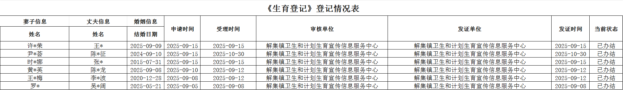 【行政确认】解集镇2025年9月生育登记花名册