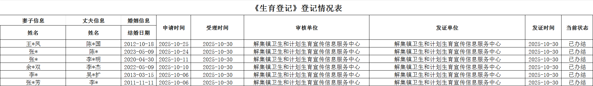 【行政确认】解集镇2025年10月生育登记花名册