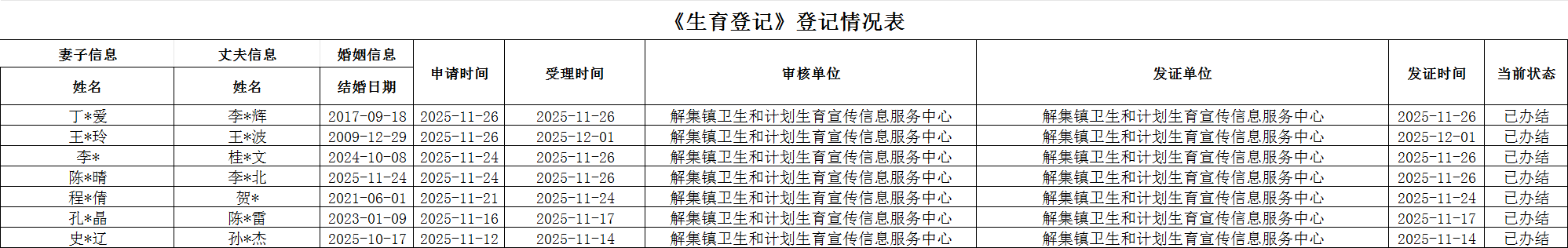【行政确认】解集镇2025年11月生育登记花名册