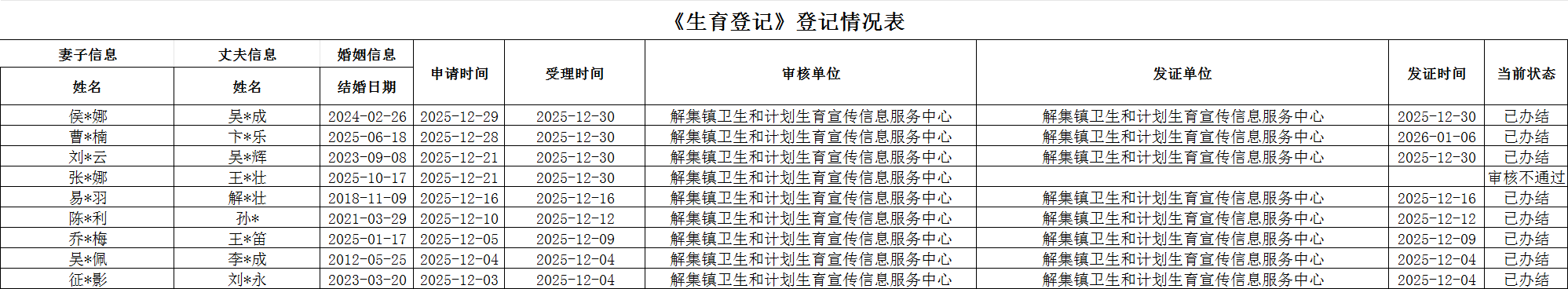 【行政确认】解集镇2025年12月生育登记花名册