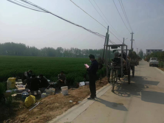 上图为汴河街道马梨园村进行小麦赤霉病防控。