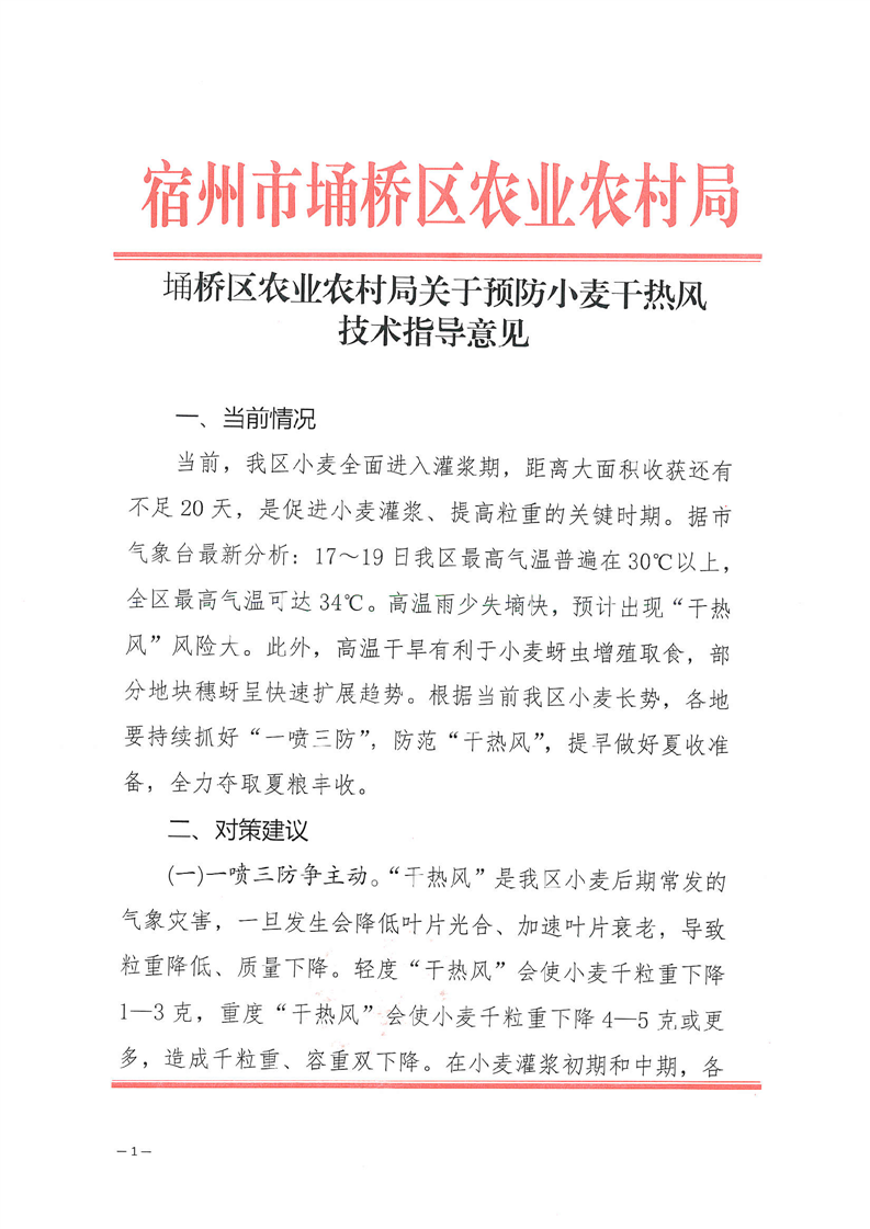【上级政策】埇桥区农业农村局关于预防小麦干热风技术指导意见